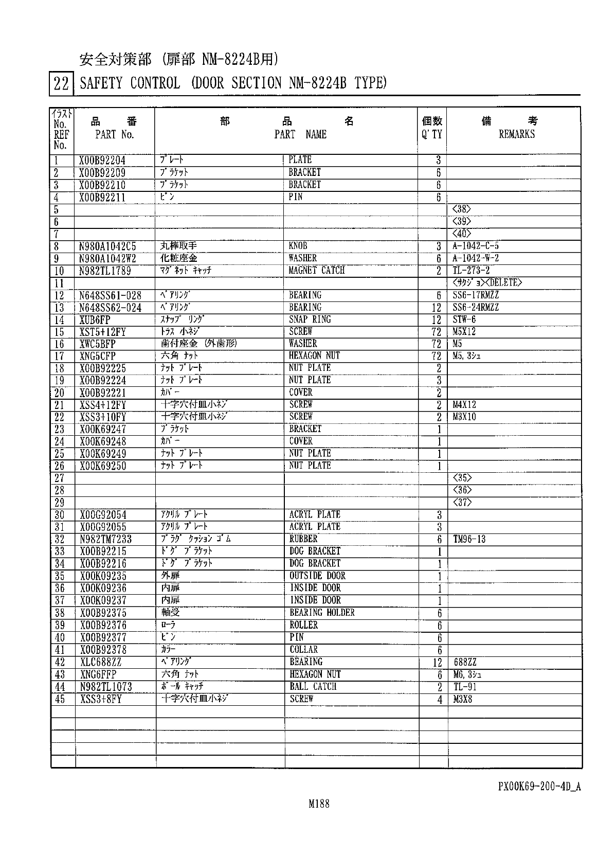 安全対策部 ( n - f • DDHA ' ' - 部 ) 22 l SAFETY CONTROL ( LOADER & UNLOADER COVER ) PX 00 K 69 - 200 - 3 B
