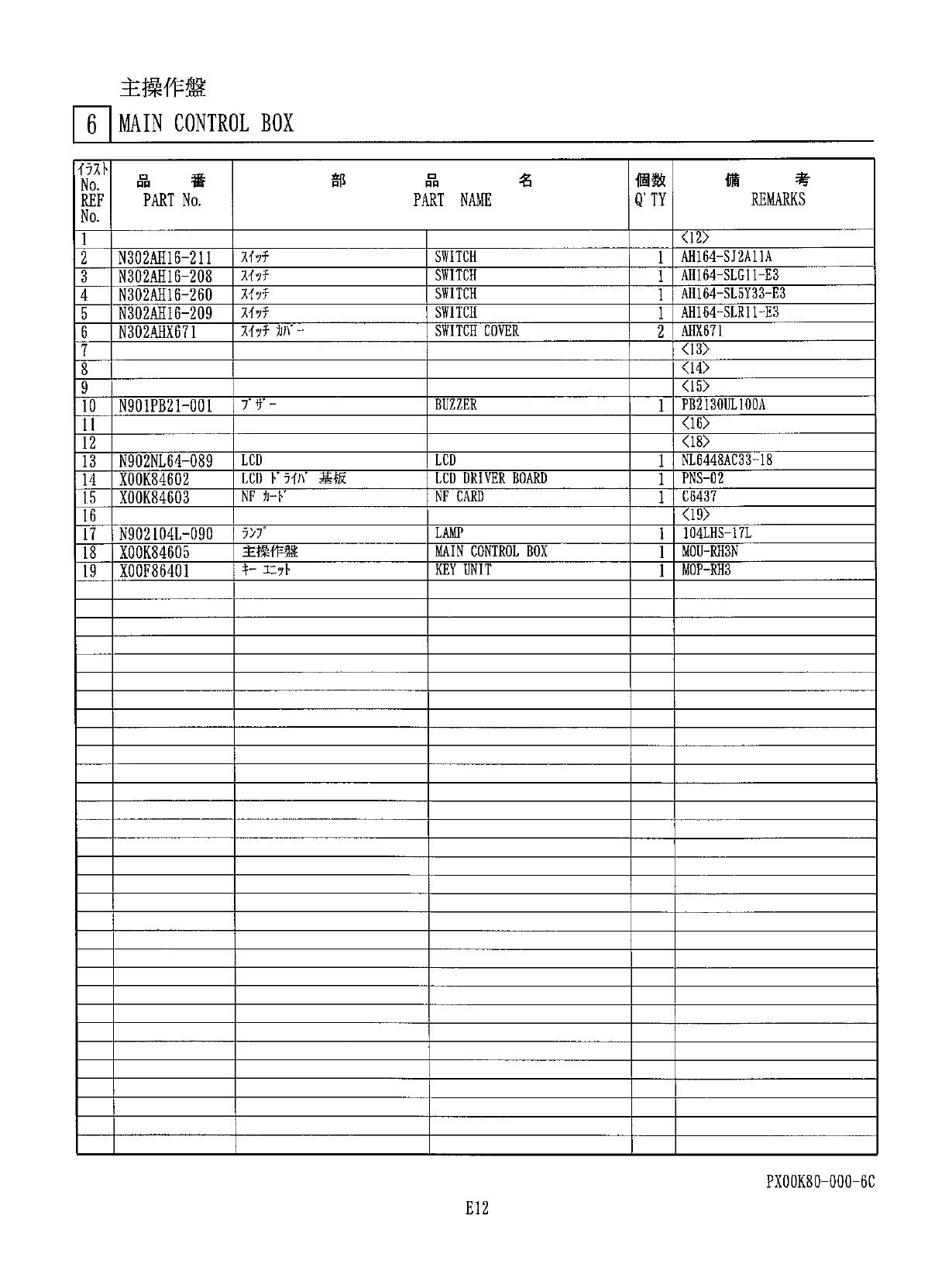 主操作盤 J ] MAIN CONTROL BOX PXOOK 8 O - OOO - 6 C