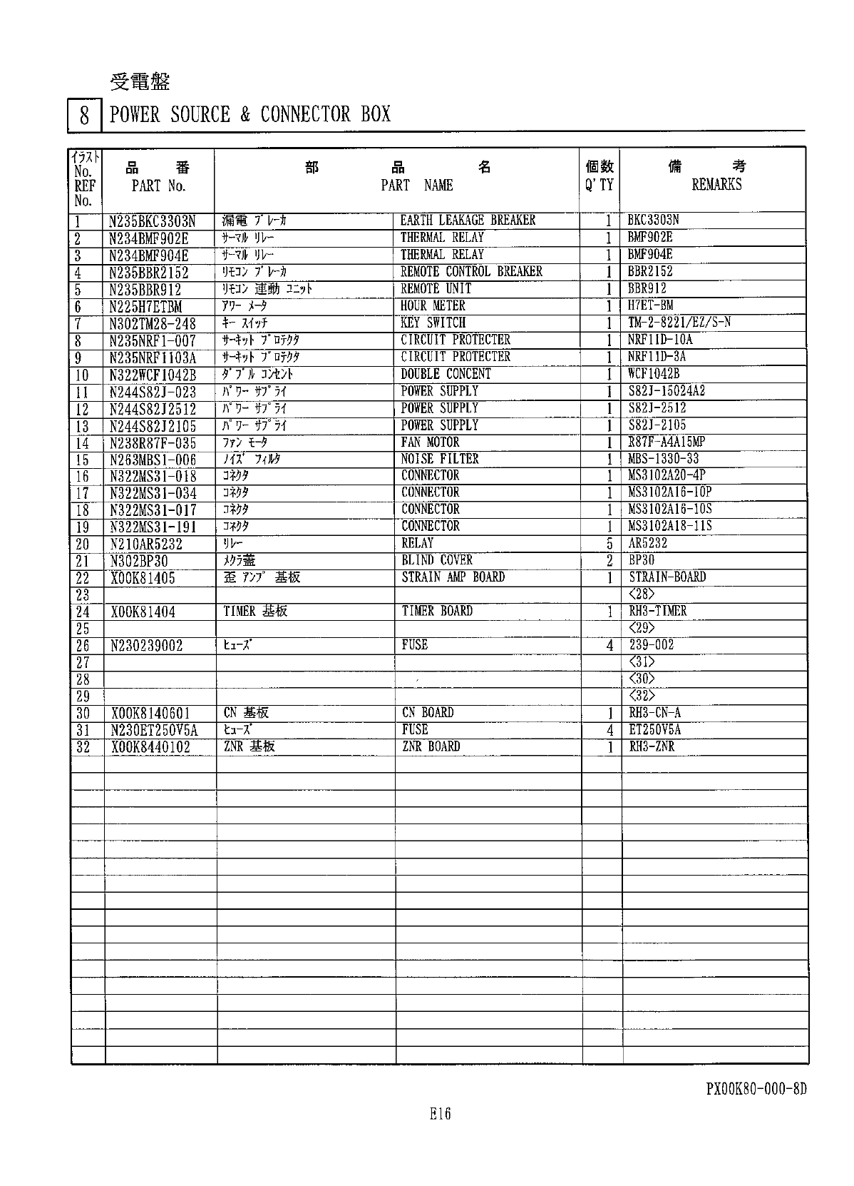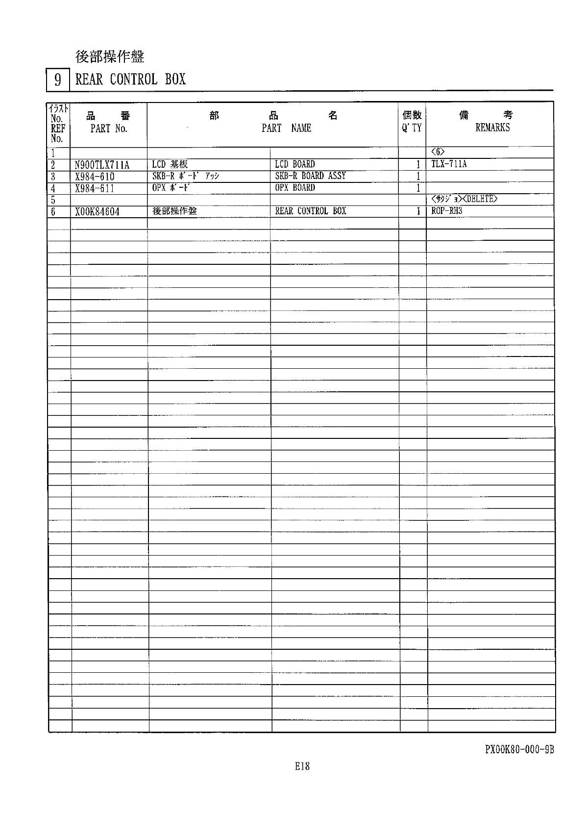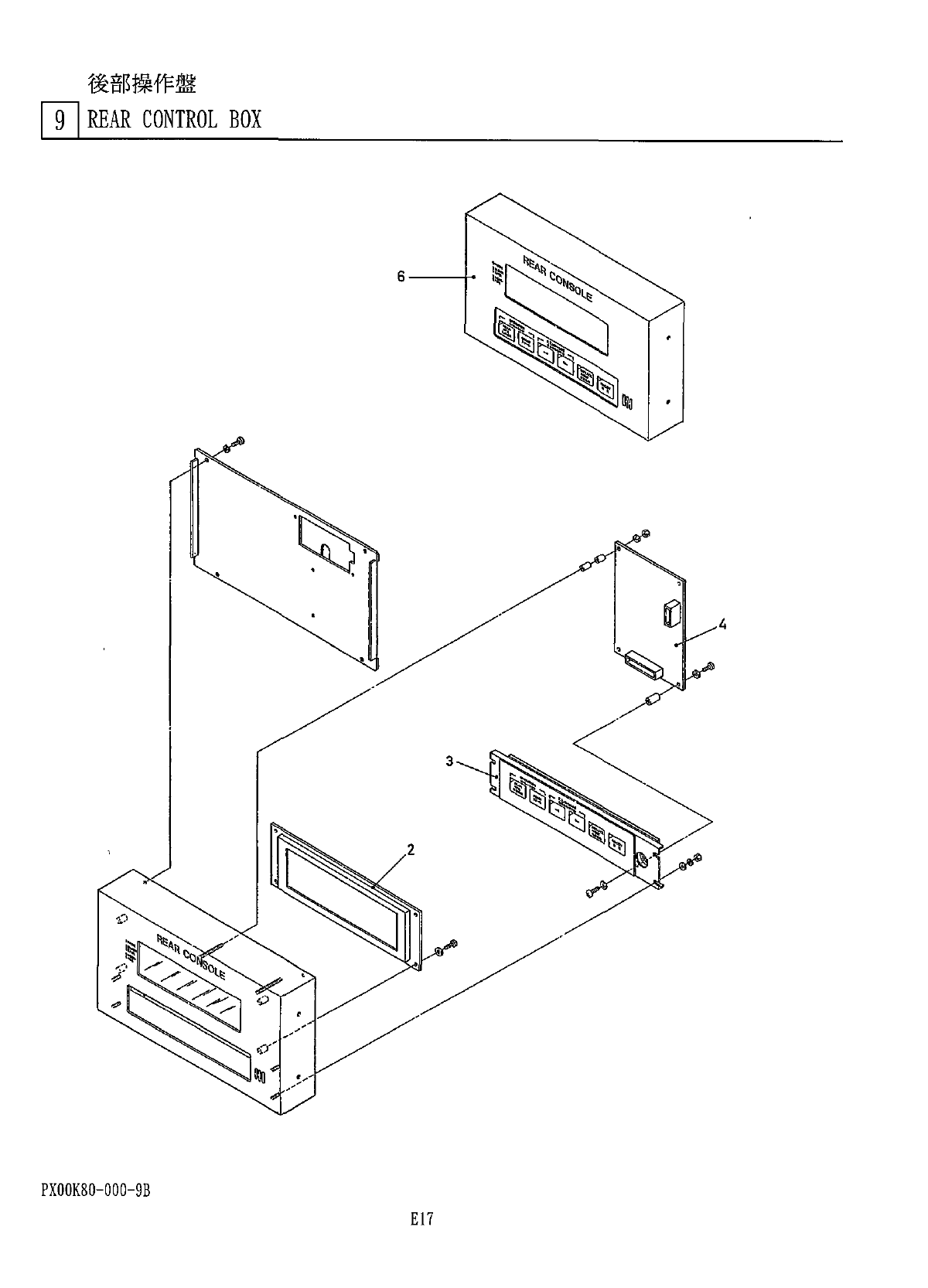後部操作盤 J ] REAR CONTROL BOX PX 00 K 80 - Q 00 - 9 B E 17