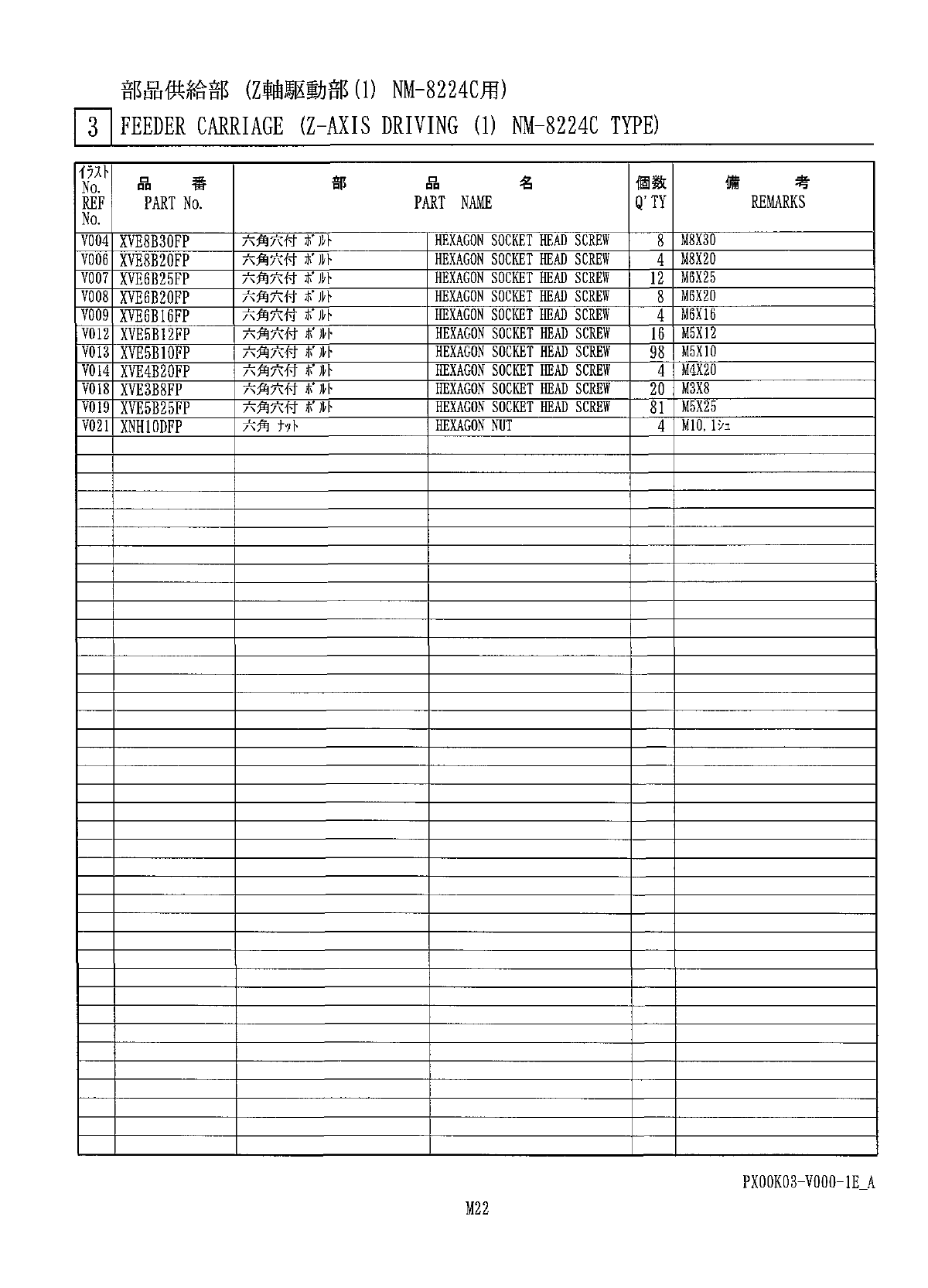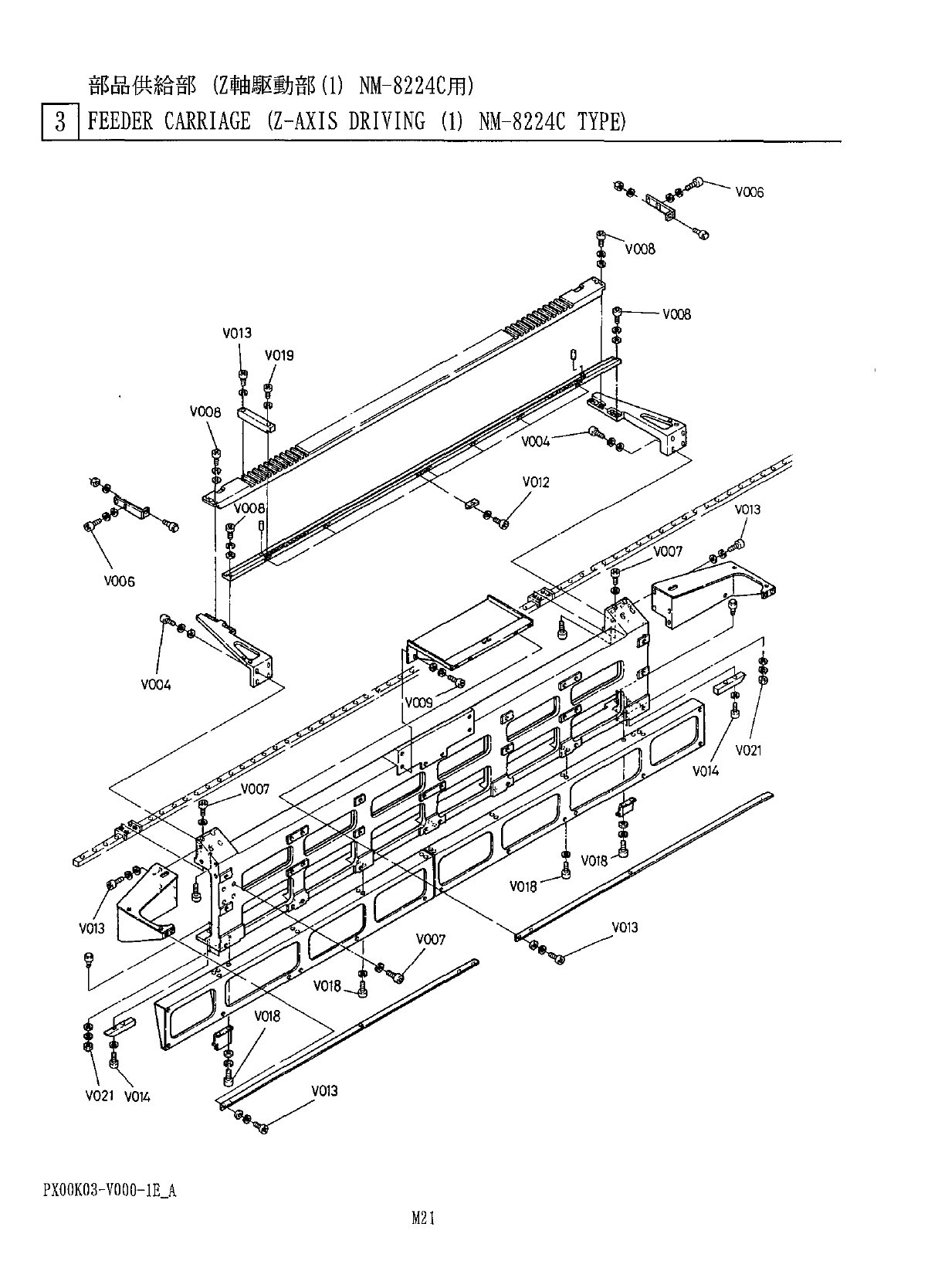 PXOOK 03 - VOQO - 1 E _ A M 21 部品供給部 ( Z 軸駆動部 ⑴ NM - 8224 C 用 ) J ] FEEDER CARRIAGE ( Z - AXIS DRIVING ( 1 ) NM - 8224 C TYPE )