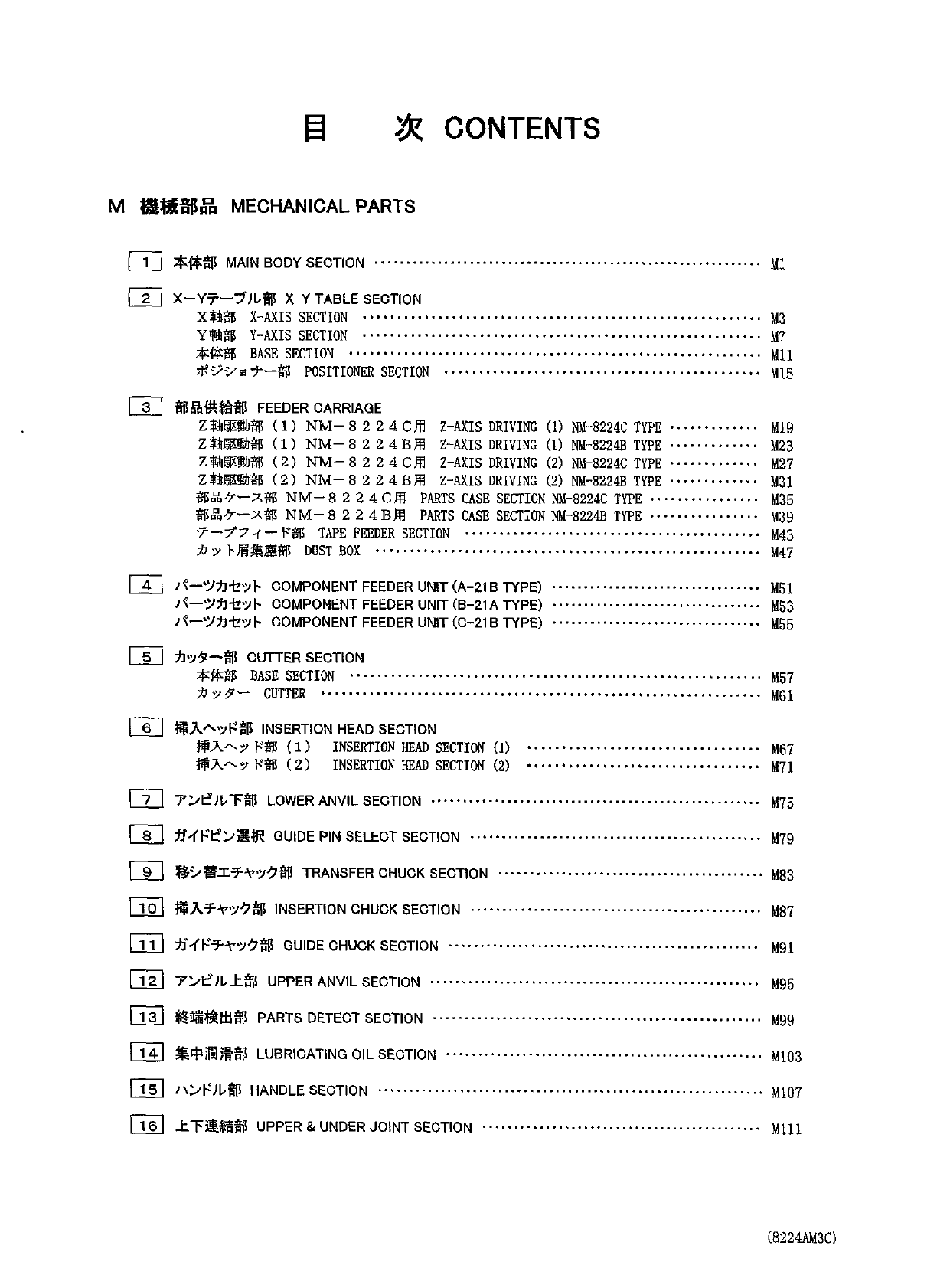 目 次 CONTENTS M 機械部品 MECHANICAL PARTS | 1 | 本 体 部 MAIN Ml BODY SECTION I 2 l X — Y 亍 一 : 部 X - Y TABLE SECTION X 軸部 X - AXIS SECTION Y 軸部 Y - AXIS SECTION 本体部 BASE SECTION 求夕夕 3 于一部 POSITIONER SECTION M 3 M 7 MU M 15 3 ~ …