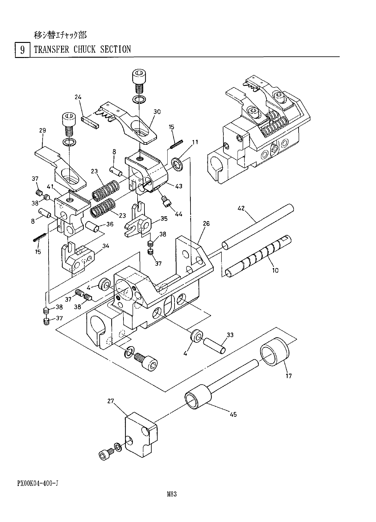 移潘工于 ” 夕部 9 l TRANSFER CHUCK SECTION 部 個 数 備 考 名 品 番 品 No . Q ' TY REMARKS REF PART No . PART NAME No . 移 〉 替 i ft ' ? ? 2 二外 XOOK 04400 C TRANSFER CHUCK UNIT W 2 < 33 > 3 7 * ' 4 X 00 K 04408 BUSHIN…