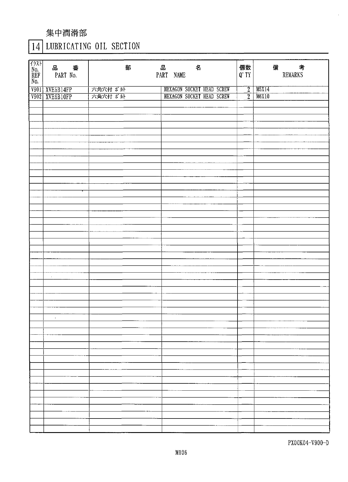 集中潤滑部 HI LUBRICATING OIL SECTION 焱 . . 1 、 % 命 • 、 f I 0 V 902 PXOOK 04 - V 900 - D M 105