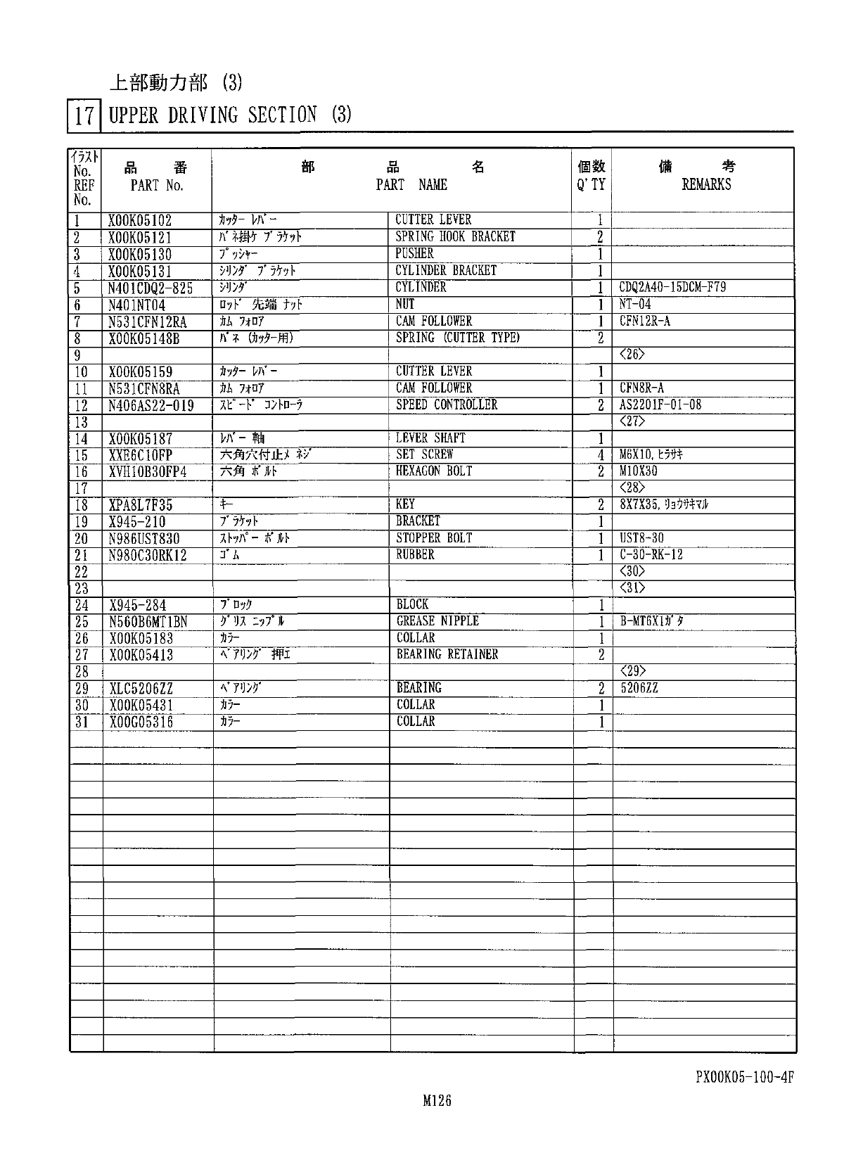 上 部 動 力 部 ⑶ 171 UPPER DRIVING SECTION ( 3 ) PXOOK 05 - 100 - 4 F