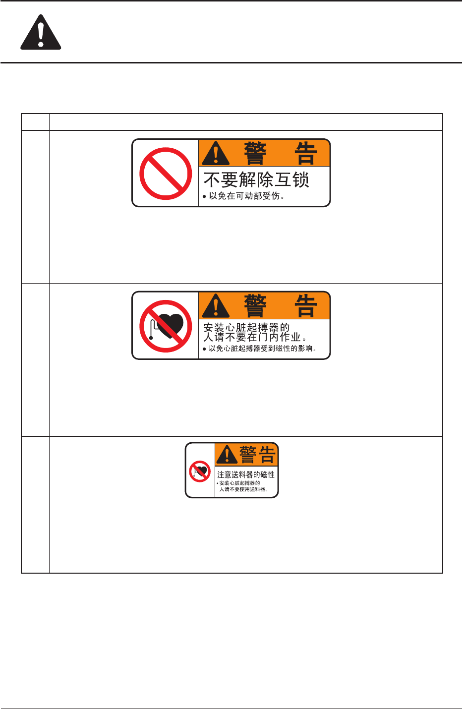 No. 警告标签及其说明