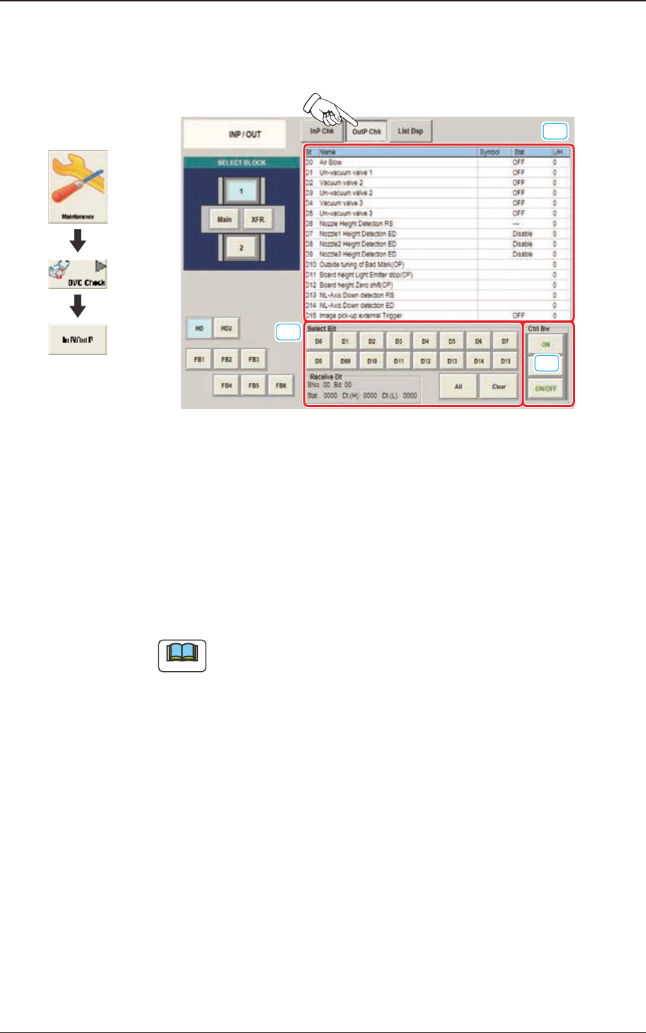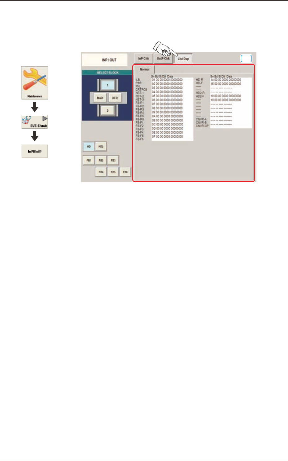 3OM-1842 1-75 1303-001 6.1.3 Schermata "List Dsp" Questa schermata permette di visualizzare lo stato I/O di ciascun sensore. [1] F3A52 [1] Indicatore di stato È visualizzato lo stato di ciascuna sezione. 6.1 Sc…