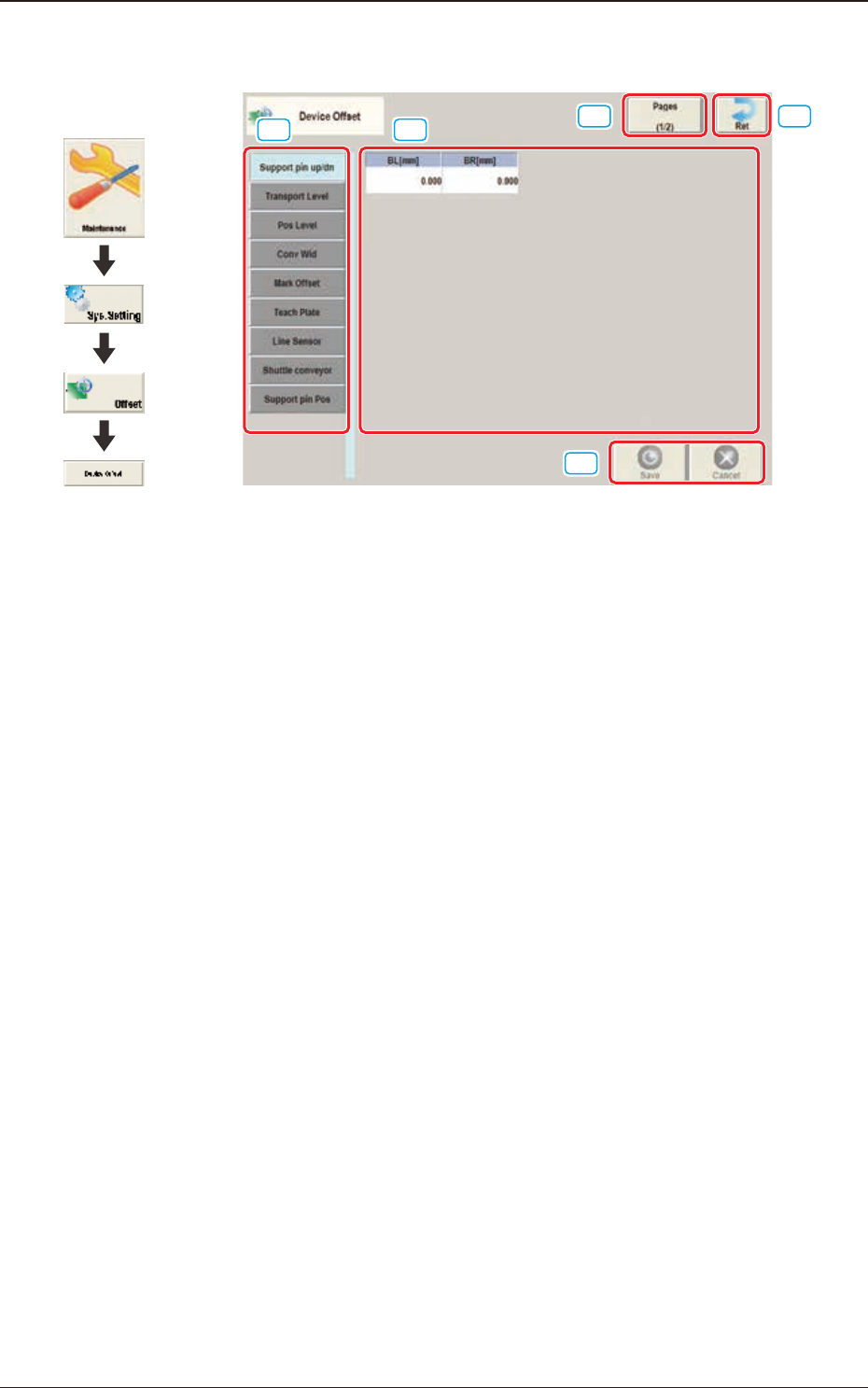 3OM-1842 2-5 1303-001 2.1.1 Scheda "Support pin up/dn" [1] F3B4 [1] BL [mm] BR [mm] Questi sono i dati di compensazione della posizione di origine dell'asse di sollevamento/abbassamento del perno di suppor…