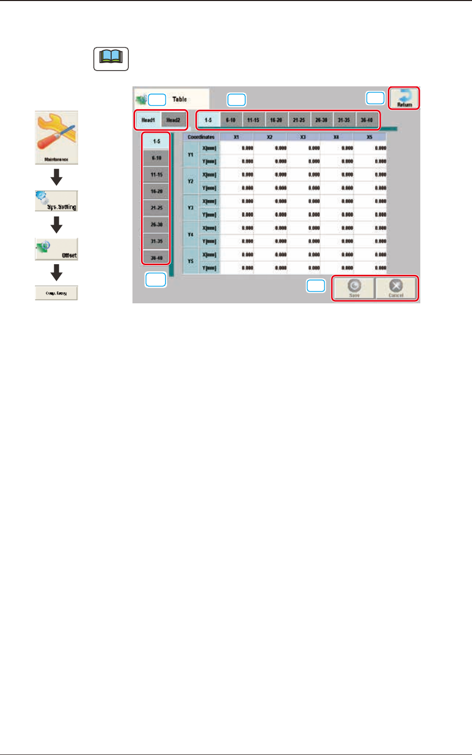 Quando è premuto questo tasto, si ritorna alla schermata "Offset Data".