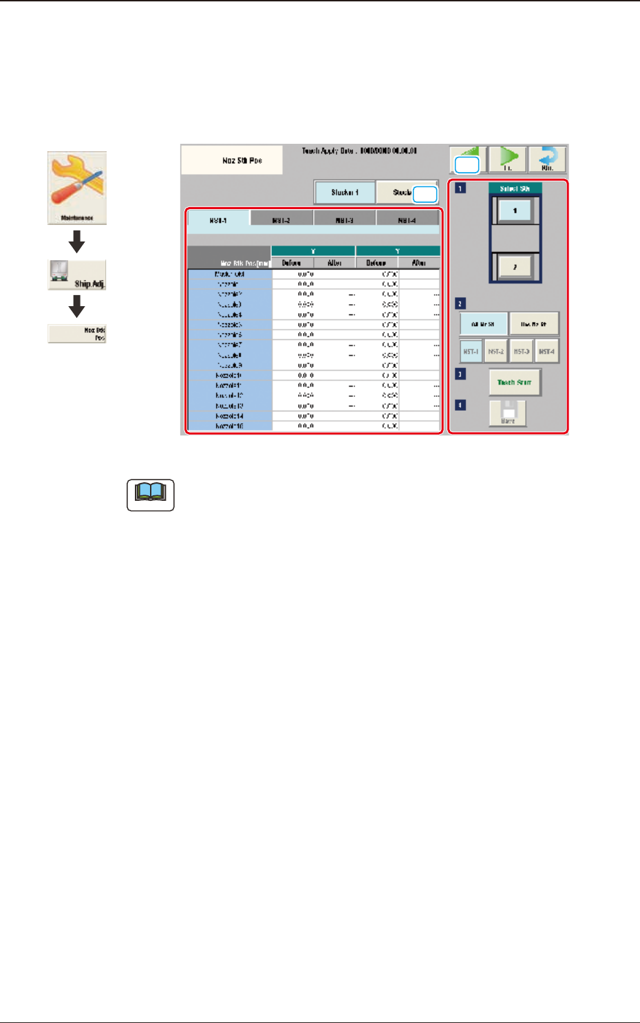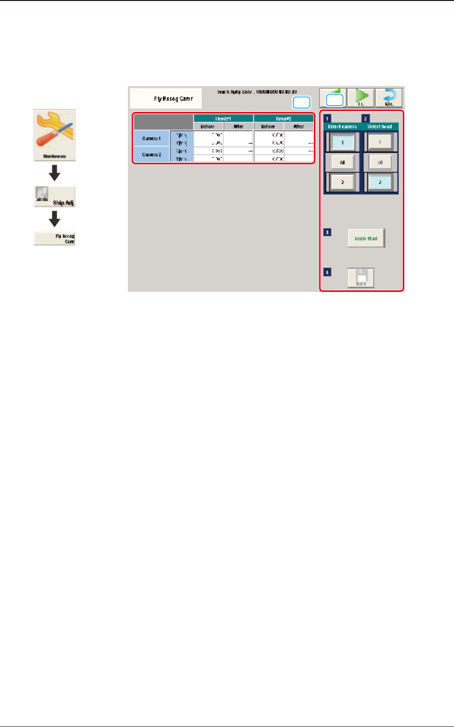 3OM-1842 1-59 1303-001 • Procedura di apprendimento Procedure (1) Selezionare la telecamera e testina (1, 2 o All) per la quale è eseguito l'apprendimento. (2) Premere il tasto [T each Start]. (Spostare la marcatura…