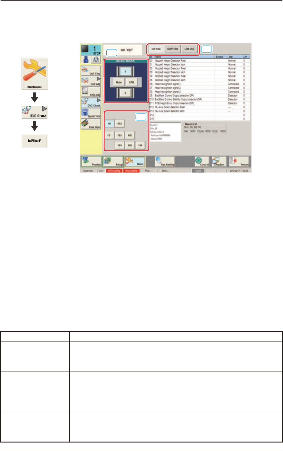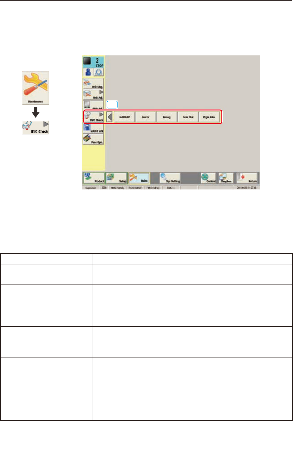 3OM-1842 1-71 1303-001 6. Menu secondario "DVC Check" La schermata corrispondente permette di controllare i segnali I/O e di visualizzare lo stato di ciascuna sezione. [1] F3A48 [1] Menu secondario "DVC Ch…