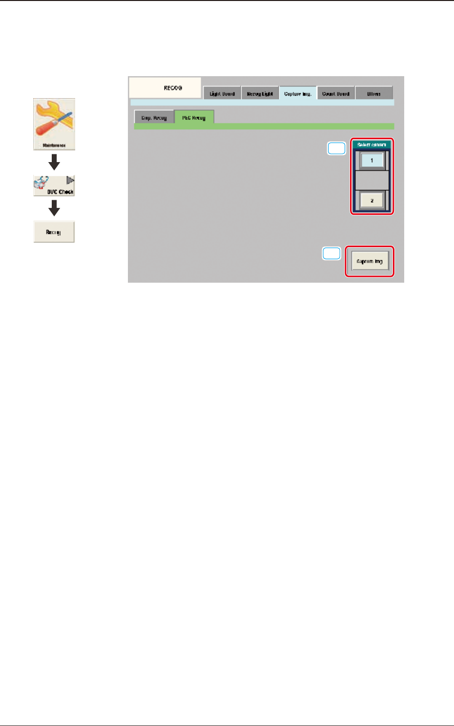 3OM-1842 1-96 1303-001 6.3.3.2 Scheda "PEC Recog" Quando nella scheda "Capture Img." è premuta la scheda [PEC Recog], è visualizzata la scheda che segue. [1] [2] F3A78 [1] Select camera Sono visualizz…
