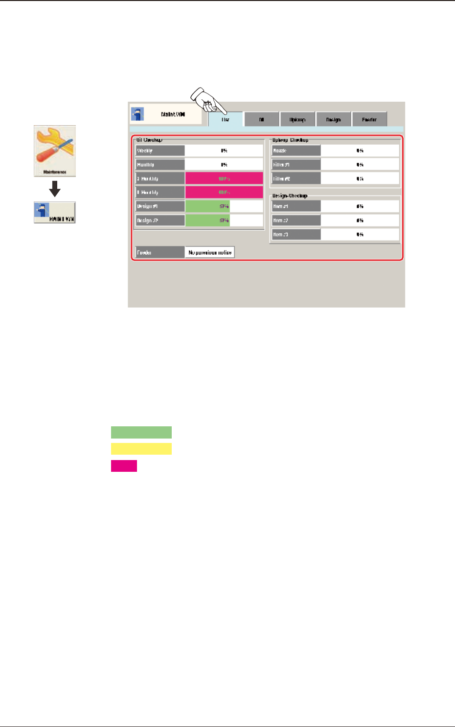 3OM-1842 1-105 1303-001 [1] Schede La schermata "MaintWM" è dotata delle seguenti cinque schede. Quando è premuta ciascuna scheda, è visualizzata la scheda corrispondente. Schede Descrizione List La scheda corr…