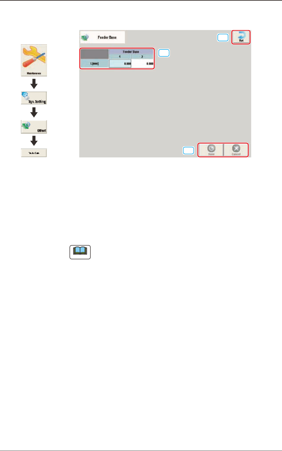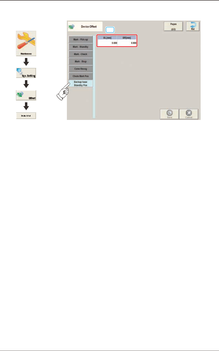 3OM-1842 2-21 1303-001 2.1 Schermata "Device Offset" 2.1.16 Scheda "Backup Base Standby Pos" [1] F3B21 Grafica dello svolgimento