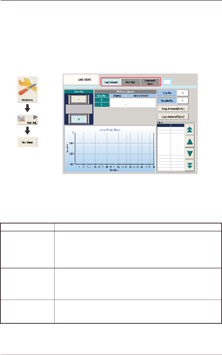 La schermata "LINE MEAS" è dotata delle tre schede che seguono. Quando