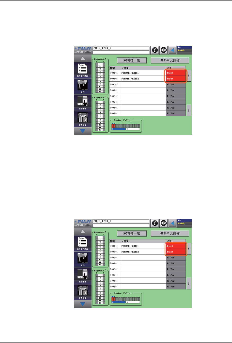 或料盘箱 B),确认其状态。如果生产中使用的元件没有被安装,需要向料盘补充元