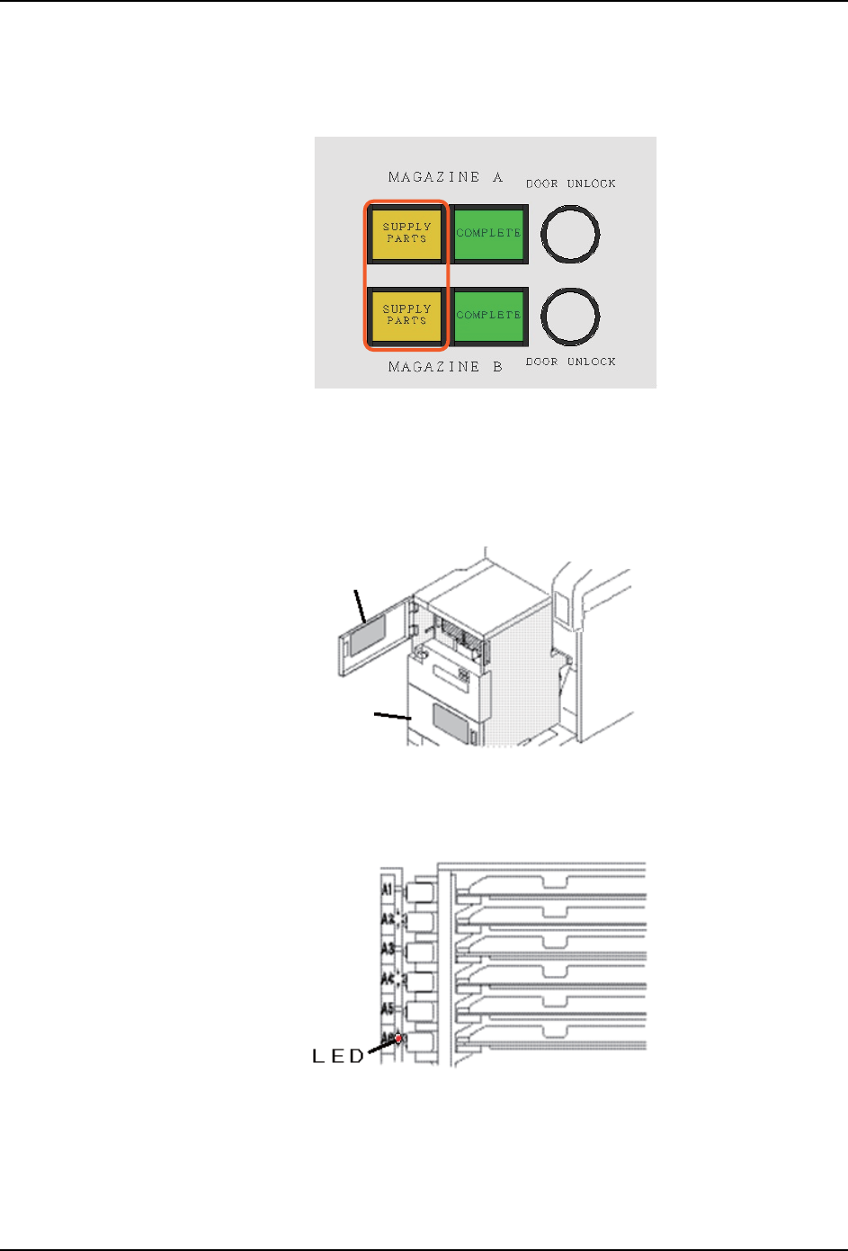 3. 请确认需补充的料槽。需补料的料槽的 LED 会亮灯。