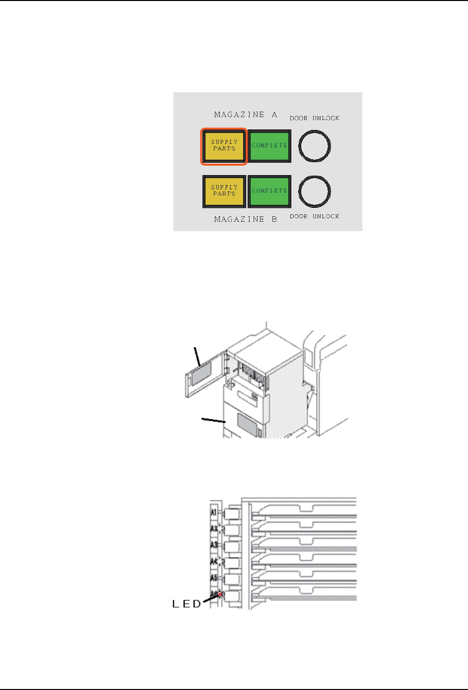 3. 确认需补充的料槽。需补料的料槽的 LED 会亮灯。