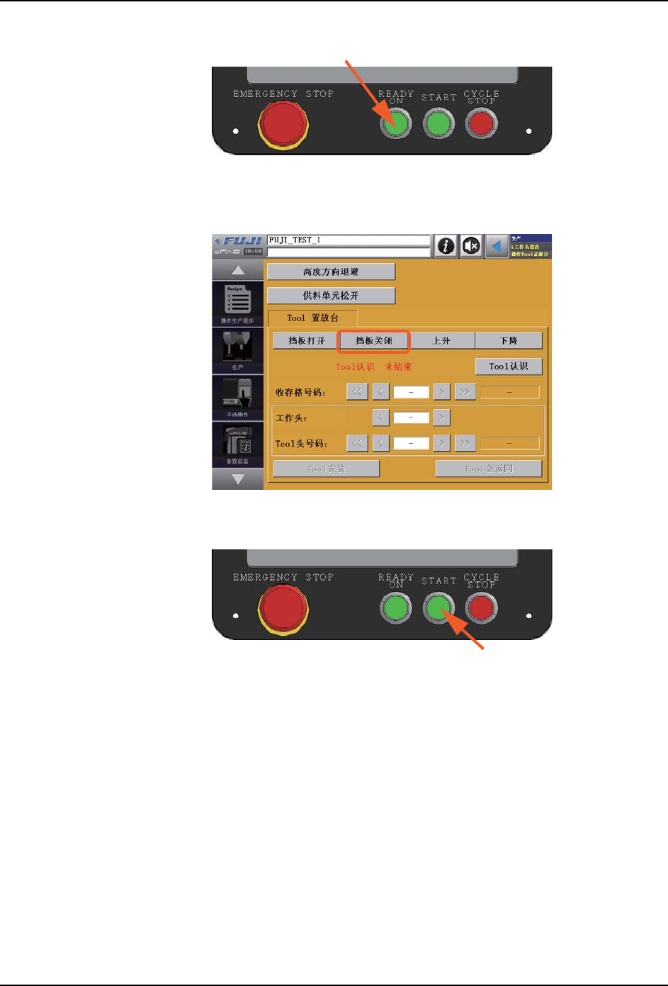 7. 在操控 Tool 置放台的画面上,请按下挡板关闭按钮。START 按钮闪烁,处于等待操作