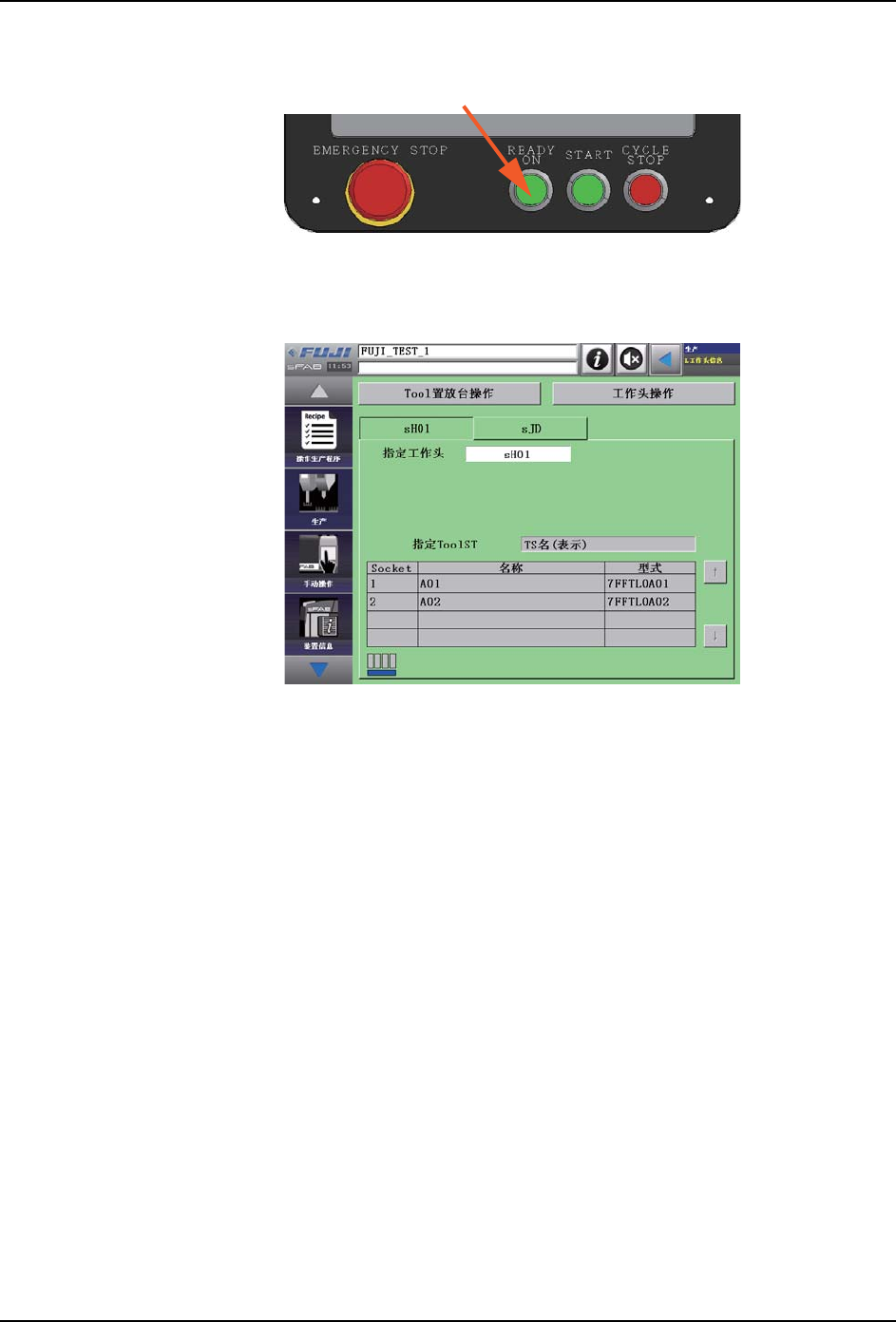 5. 必要时,请安装供料单元。机器识别供料单元的安装,READY ON 按钮闪烁,请按下