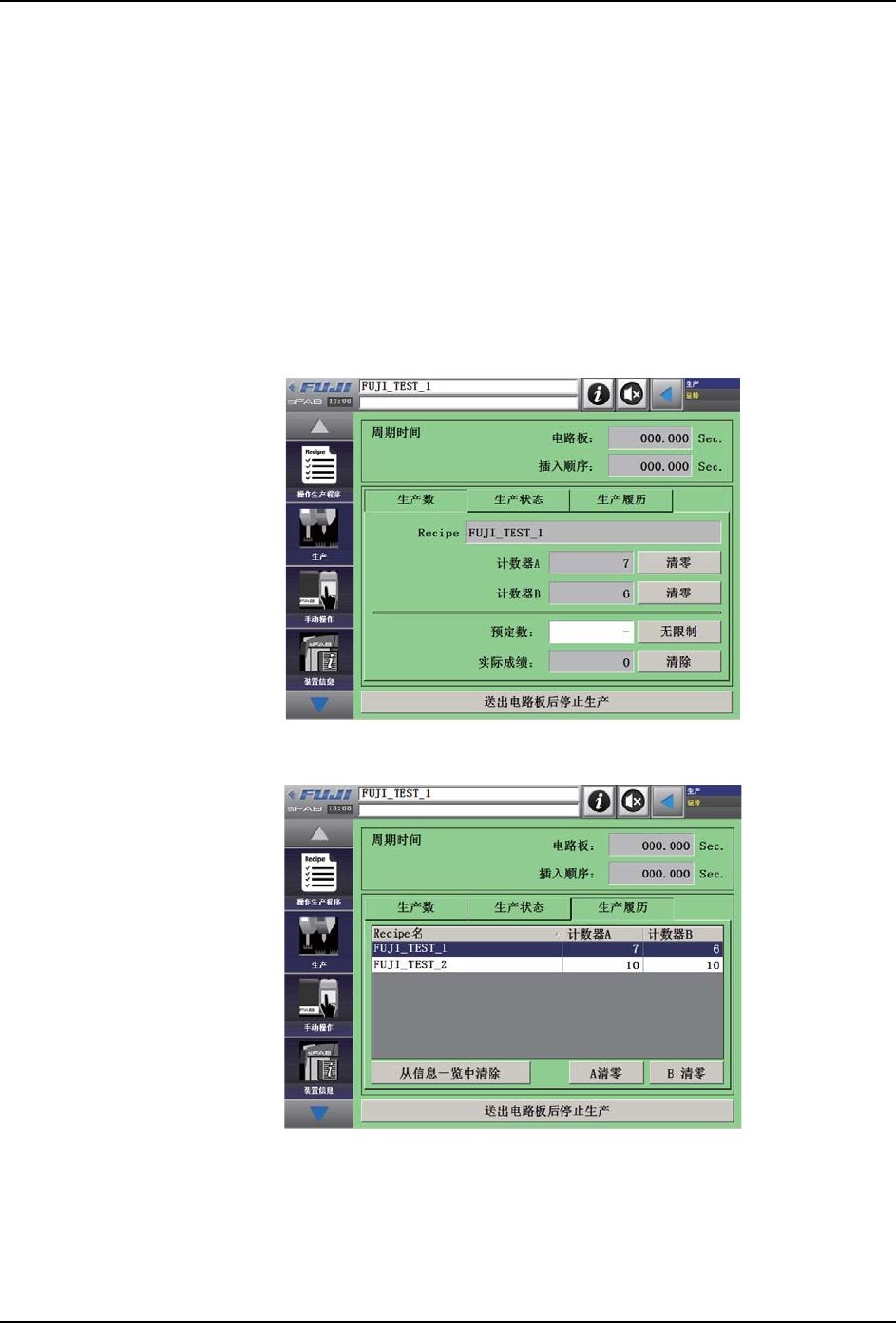 从下一小节 「 7.1 如何进行生产设定 」开始直到 「7.7. 如何补料」为止介绍一般模式,