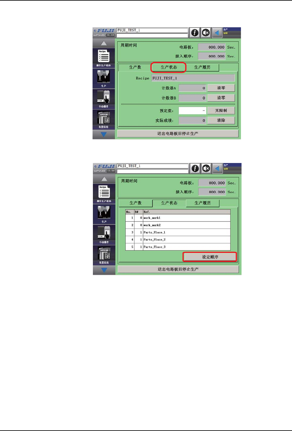 3. 按下生产状态画面的 「顺序指定」键。