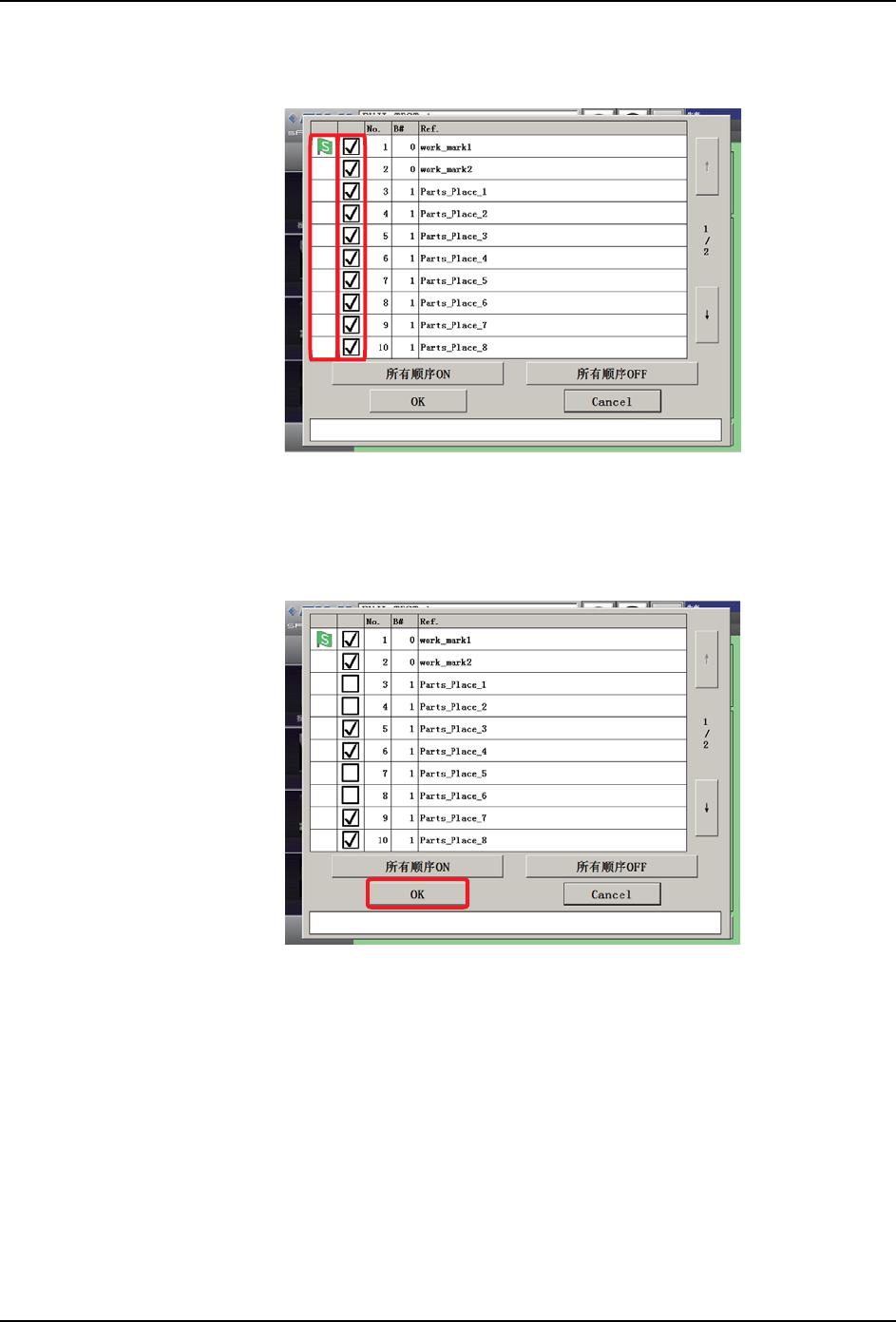 5. 确认开始顺序和想要进行生产的顺序后,按下 「OK」键。