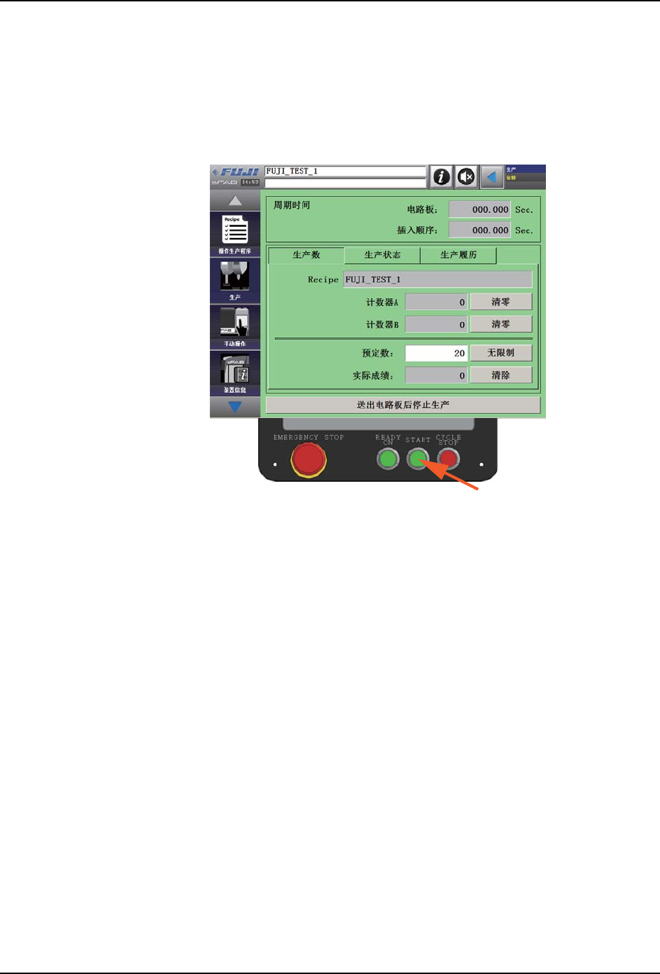 START 按钮闪烁,请按下 START 按钮。从周期停止状态开始恢复生产时,从下一生产进度表
