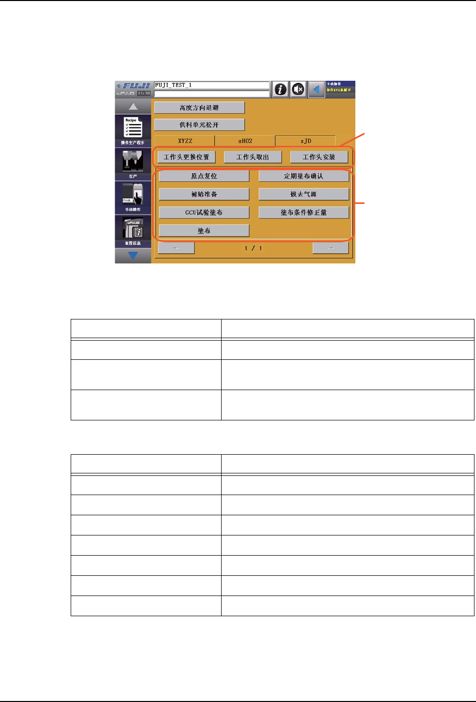 画面说明 (XYZ 机械手固有的按钮)