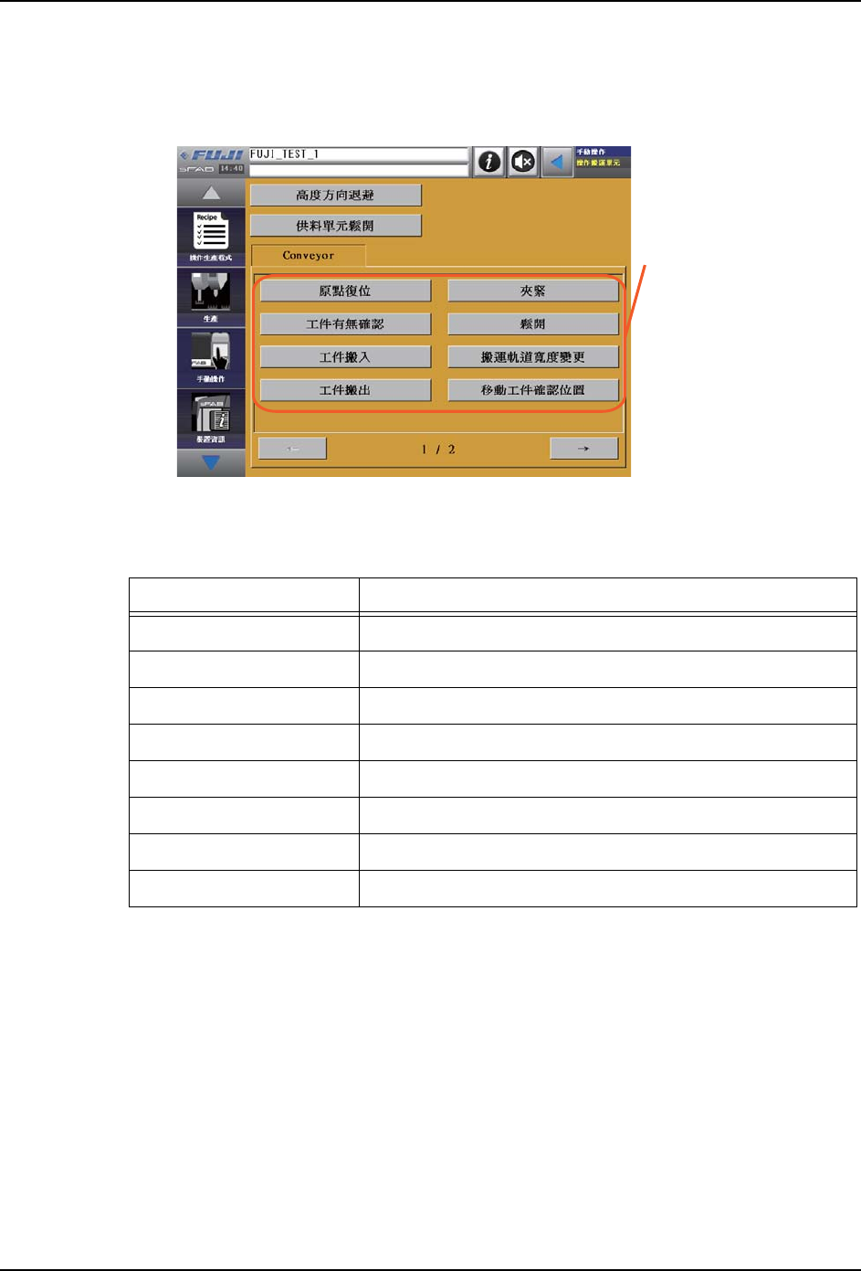 搬运轨道固有部所表示的按钮名称和按钮项目数根据连接的搬运轨道而不同。上述画面作为例子,