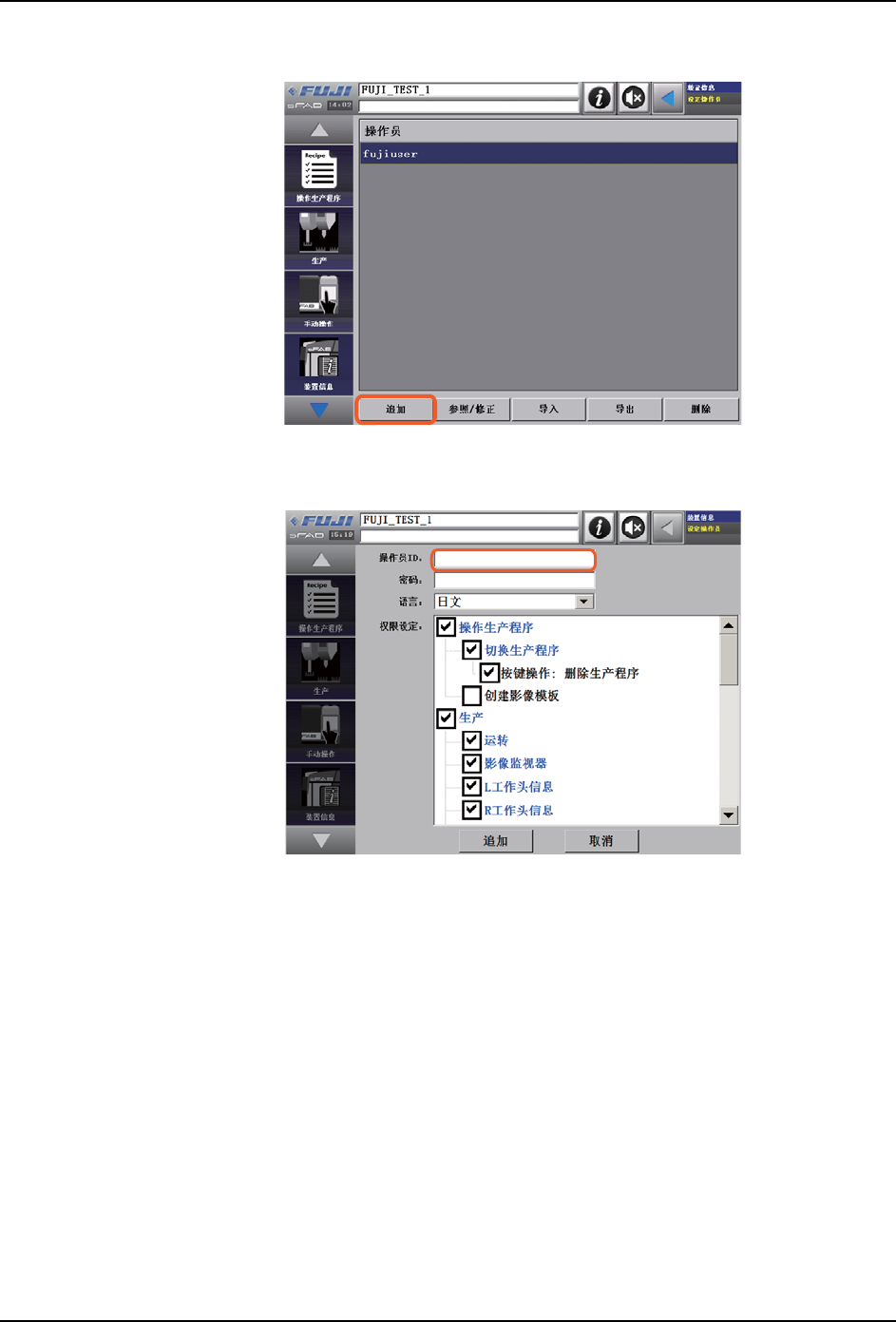 9.1.1 追加操作员时的画面说明