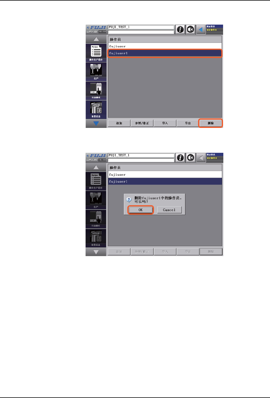1. 选择想要删除的操作员信息,按下 [ 删除 ]。