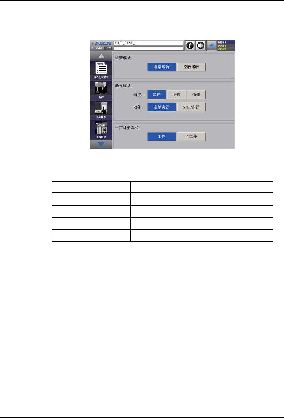 通过 [ 设定装置 ] 下面的 [ 设定运转 ],能够设定生产及手动操控的工作条件。