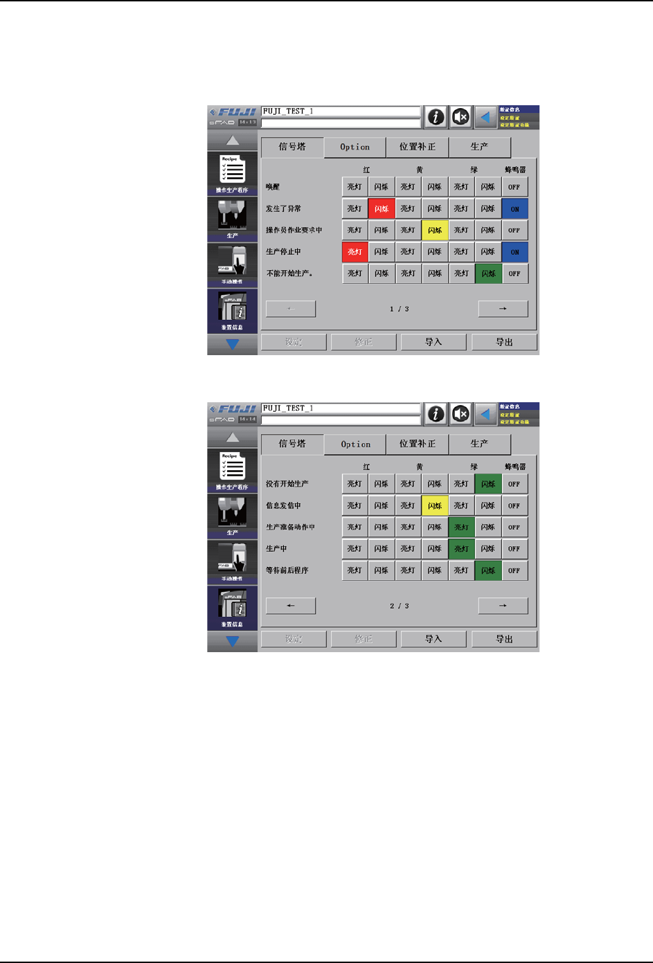 对于画面上所显示的机器的各种状态,进行信号塔上的各指示灯的亮灯/闪烁的设定和蜂