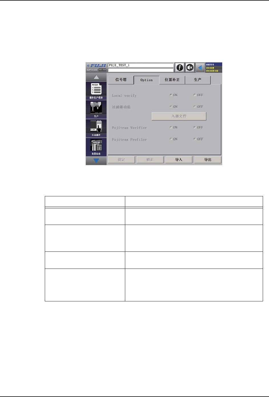 将 Local verify 功能或 Fujitrax 功能设定为 ON 或 OFF。为了设定本功能,必须另行购买