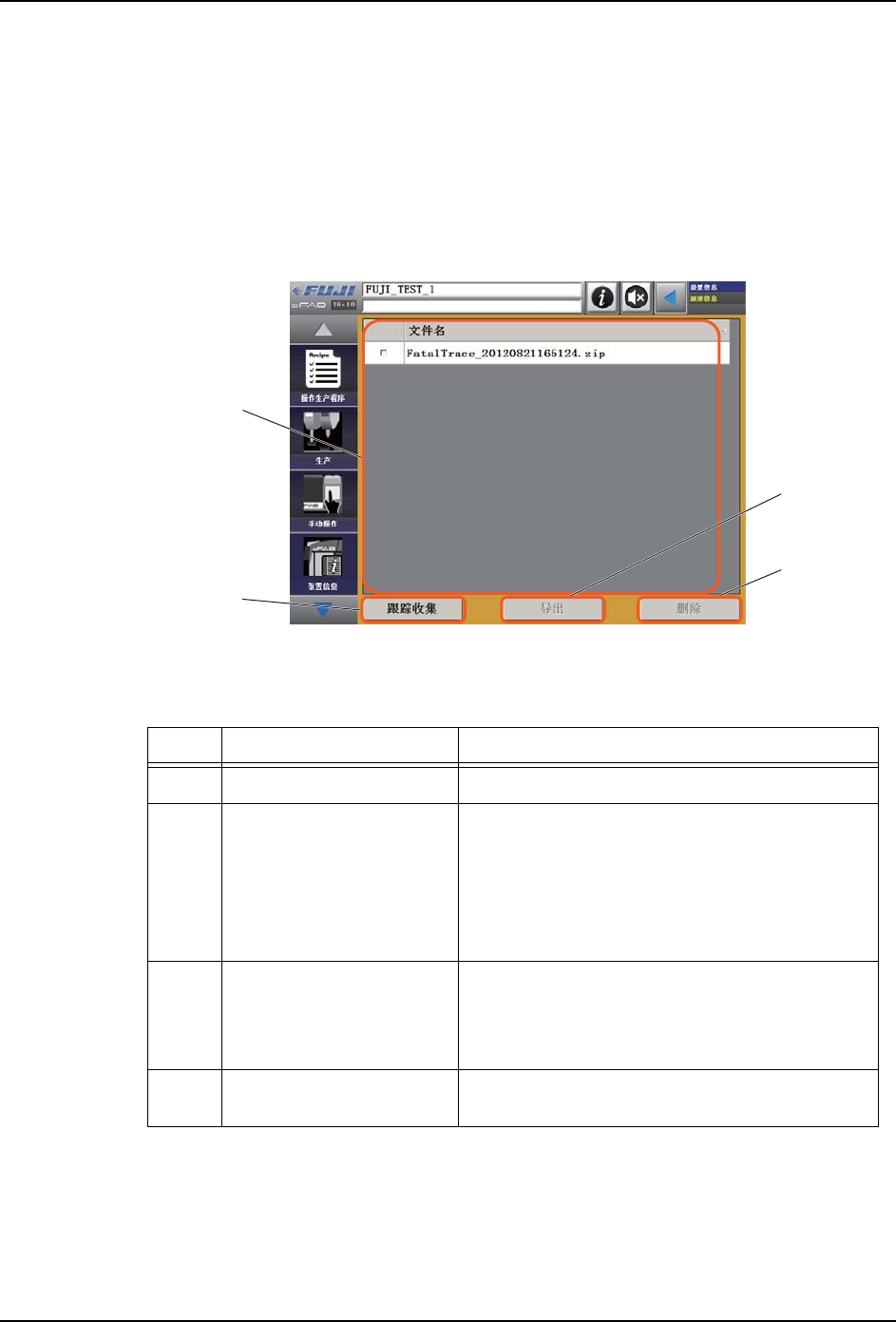 ① 跟踪列表显示区域 列表显示机器内所保存的跟踪信息文件。