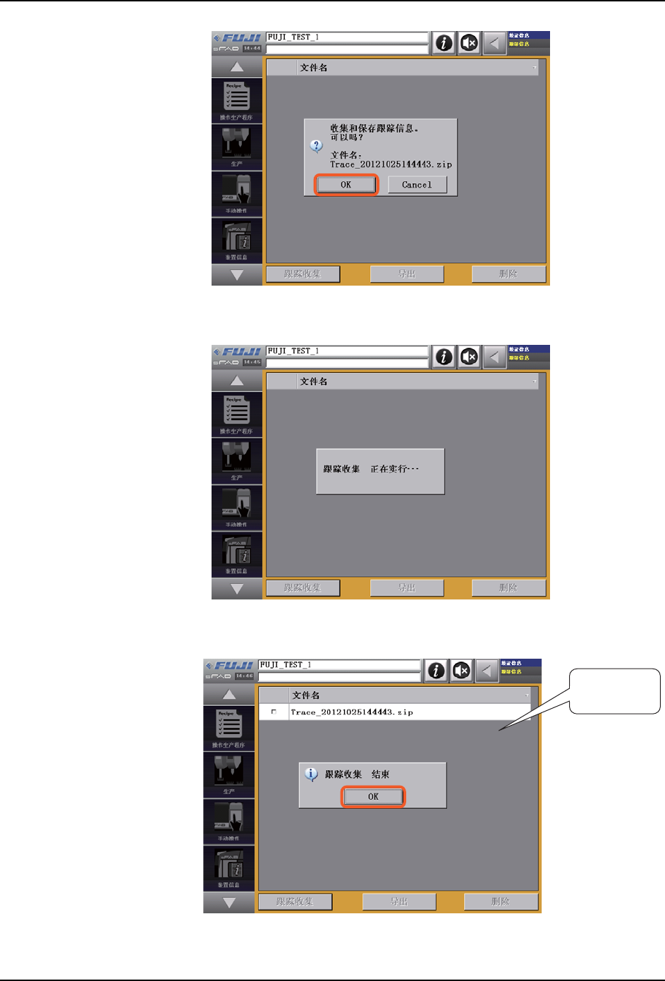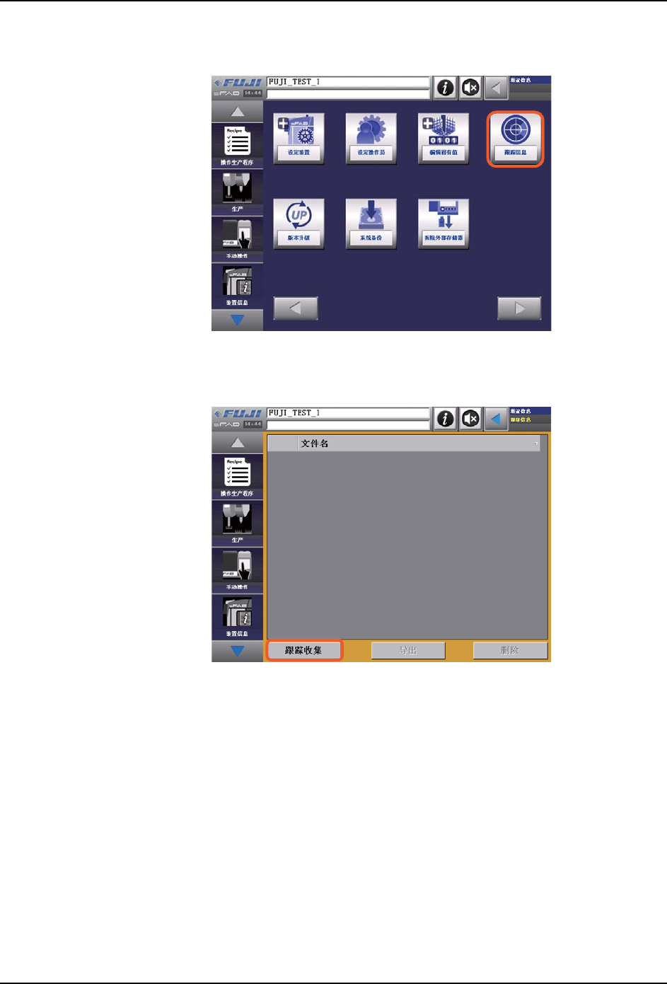 9. 系统管理 OPE-SFAB-005S0 240 SmartFAB 操作手册 9.10.3 跟踪信息的收集步骤 1 . 按 下[跟 踪 信 息] 。 2 . 按 下[跟 踪 收 集] 。 39OPE-0310-S 39OPE-031 1-S CoaQ1DBp CoaQ1DBp Downloaded at 2015/10/08 22:10:586 by 3NEC4804 DL#XBovDH4m Downloaded at 2015/1…