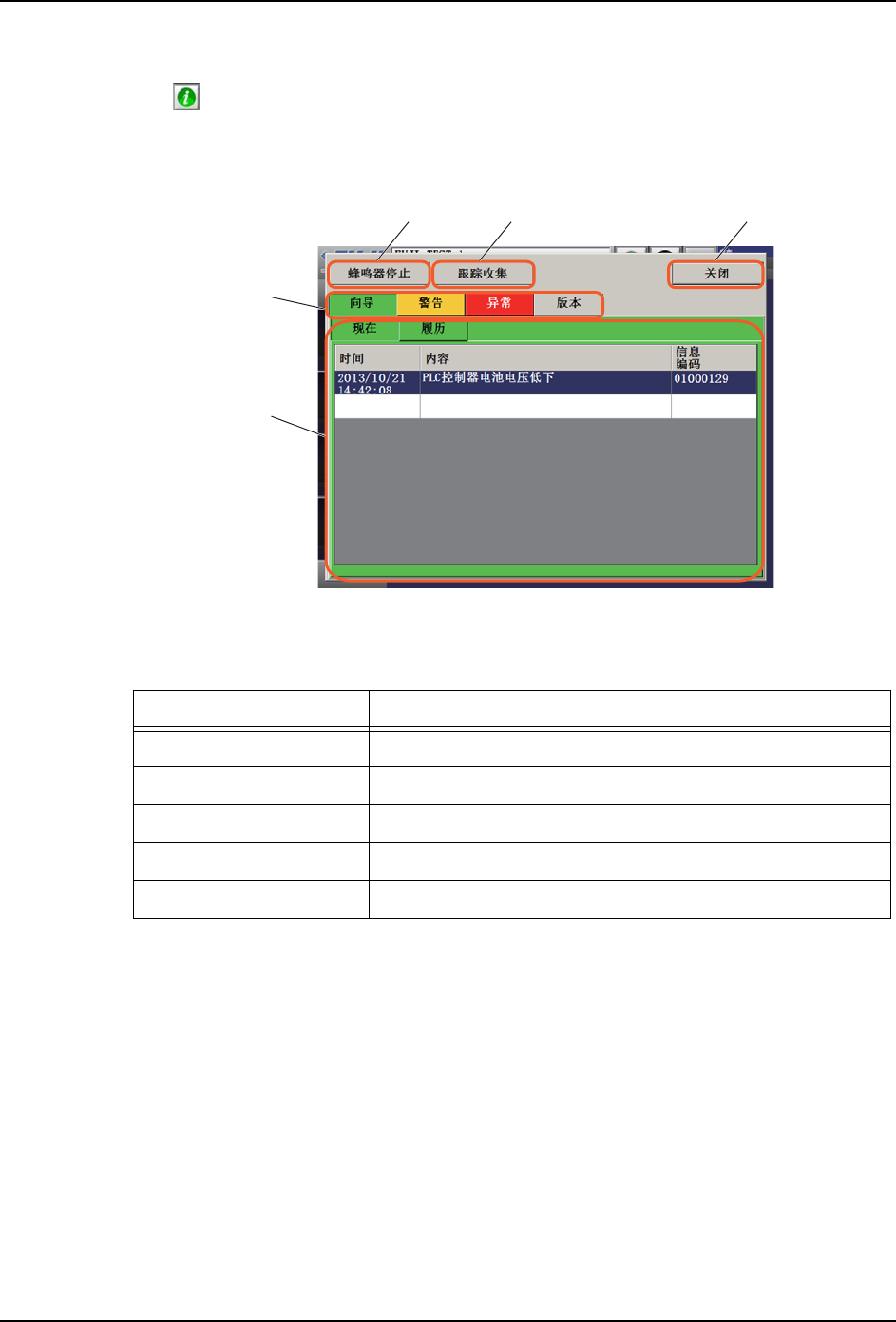 通过 按钮,能够进行向导的确认、警告的确认、异常的确认、机器内软件和单元的版本