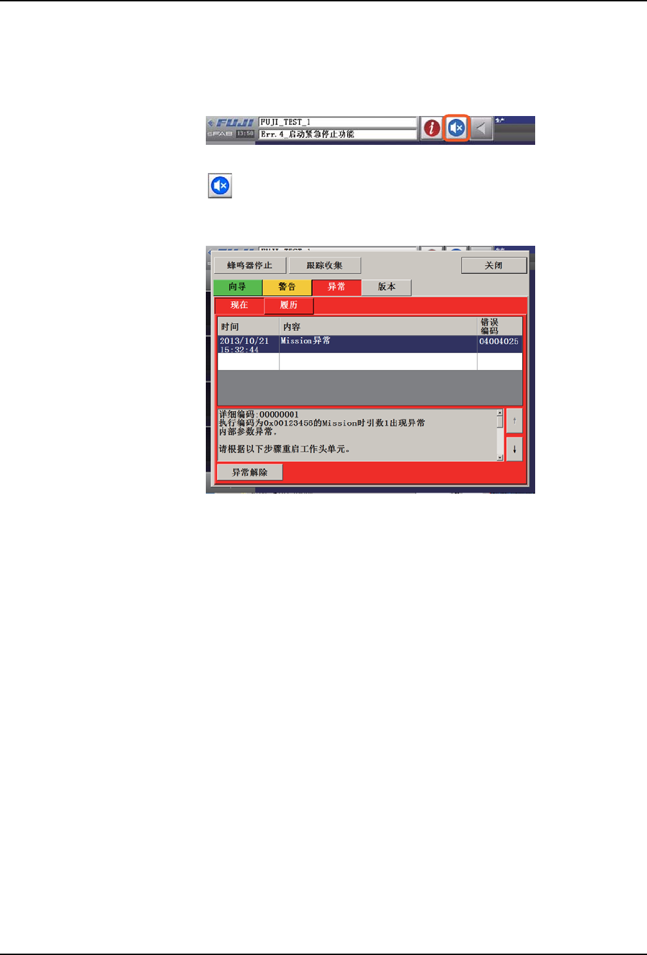 ② [ 履历 ] 标签页 显示过去发生的异常信息。