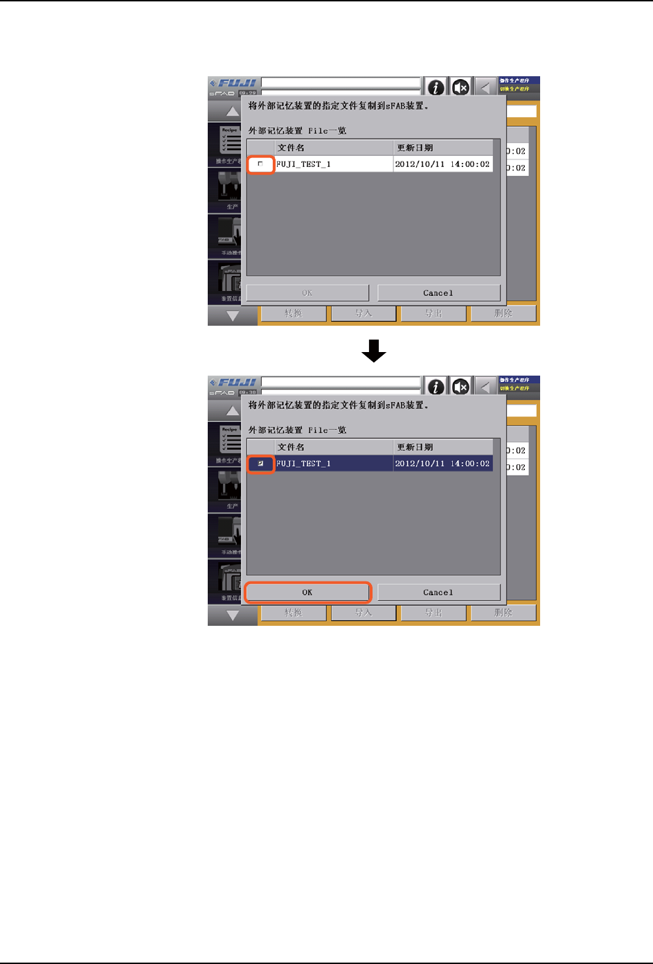 下 [OK]按钮。所选择的生产程序被导入到机器内。