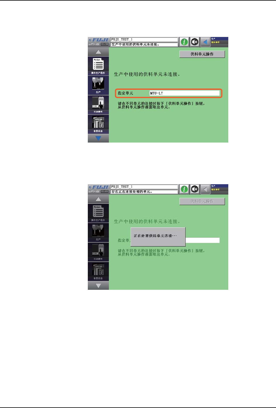 4. 操作画面显示未连接,并且对话框消失时,则能够卸下供料单元。请注意不要与周围相