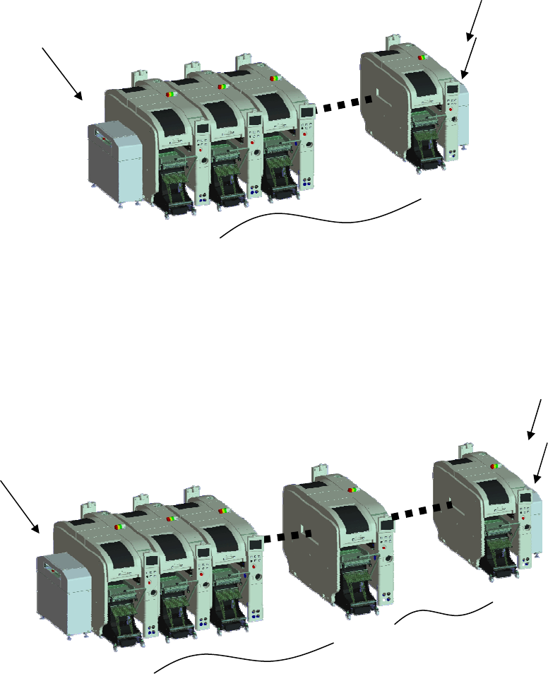NPM-D 2010.0915 - 30 - 4.4 生产线构成 设置 NPM-D 的设备时, 无论是单体设置, 生产线连接, 为了设置有生产线服务器功能的单元和确保传送开口 部 的 安全,在 NPM-D 两侧必须设置 NPM-D 或者延长传送带。 ■ 连 接数量在 15 台以下时 生产线的最左端必须设置 NPM-D LNB 传送带 ( 机种名 : NL-CON 2 型号 : NM-EJK8A) 。 ■ 连 接数量在 16 台以上, 3…