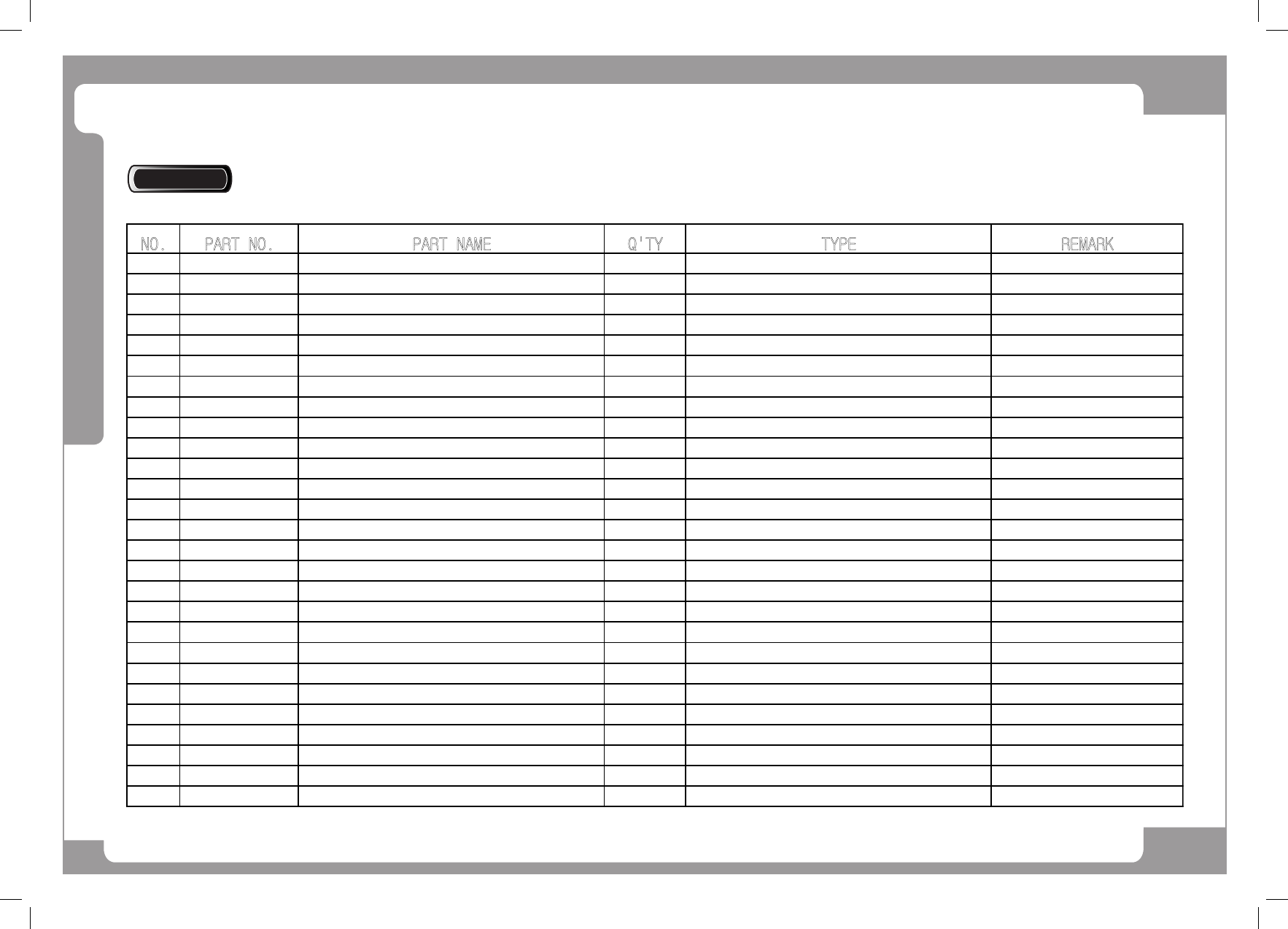 NO. PART NO. PART NAME Q'TY TYPE REMARK