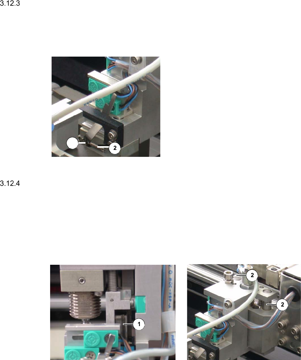 67 Lubricating Bea rings and Dri ver Gro ove at the Sensor Lever Interval: 1 month Equipment: Spray grease ( aerosol) Legend [1] Bearing of the sens or lev er with driver groov e behin d it [2] Return s pring Carefully…