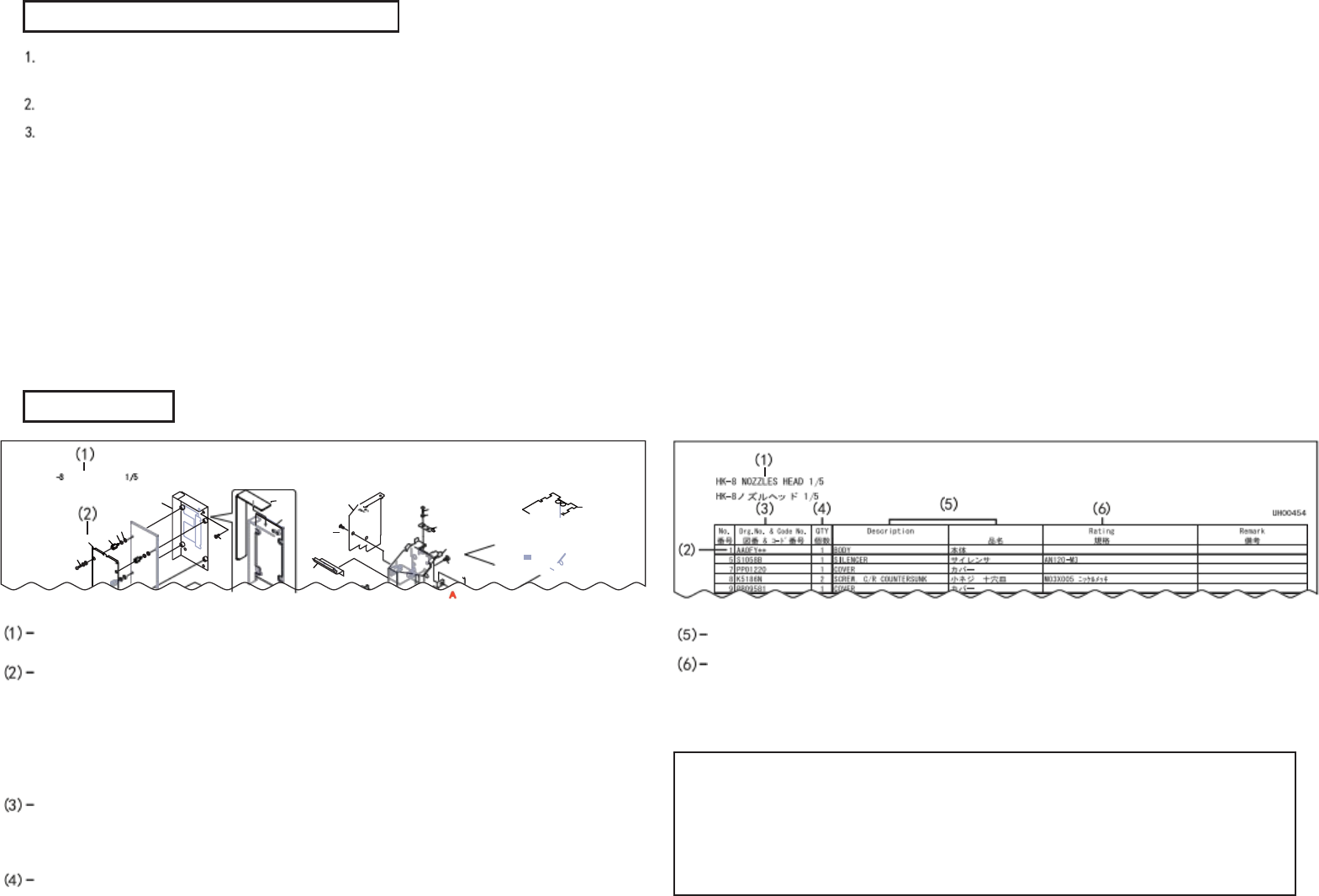 订货的时候,请确认机器名,串行号NO,参照本零部件一览表后,正确地提出图号、代码号、个数、部件名称以及规格。