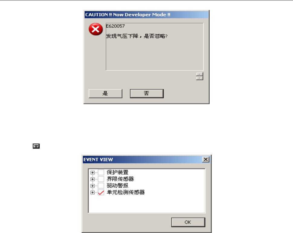 打开安全盖、按下紧急停止开关、或检测到各轴的伺服驱动的警报等时,显示如下画面。