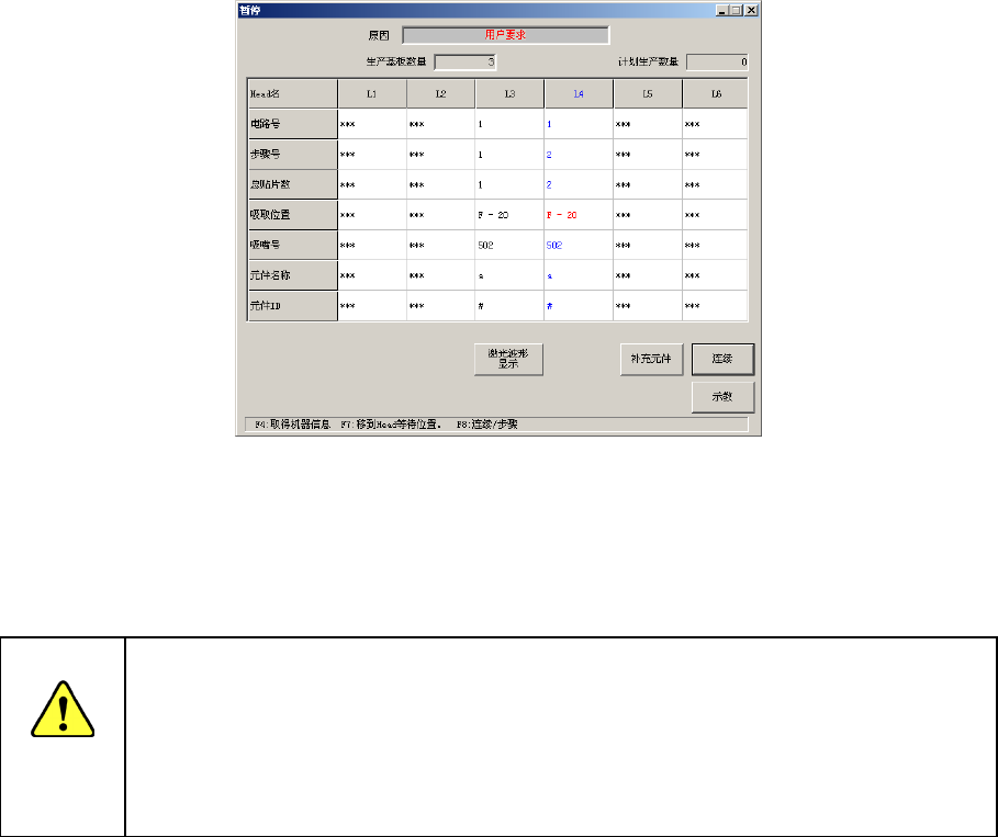 2) 在步骤生产中停止,或在连续生产中暂停时,按下键盘 “F7”键,可将贴片头移动到