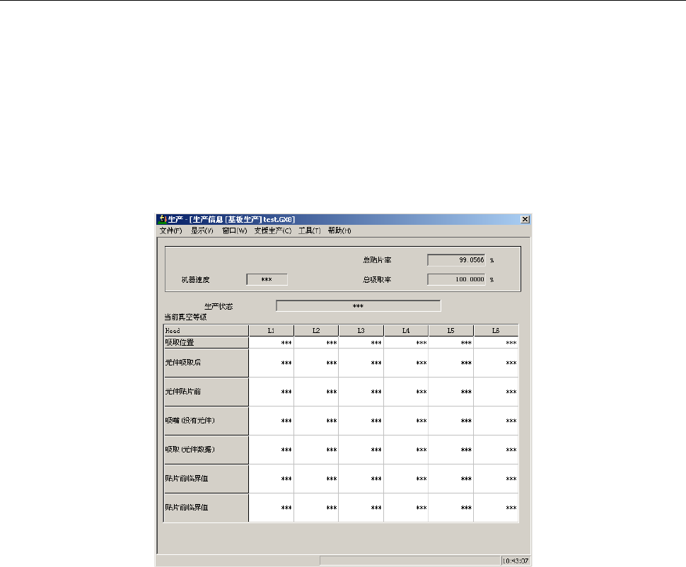 显示每1张基板的操作节拍、总贴片率、总吸取率、真空值的信息。