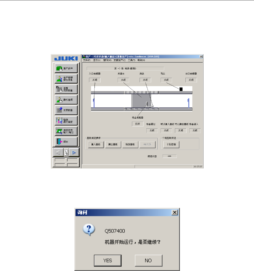此外,在下图的生产空运行画面中,可以执行基板搬入/搬出等传送运行。