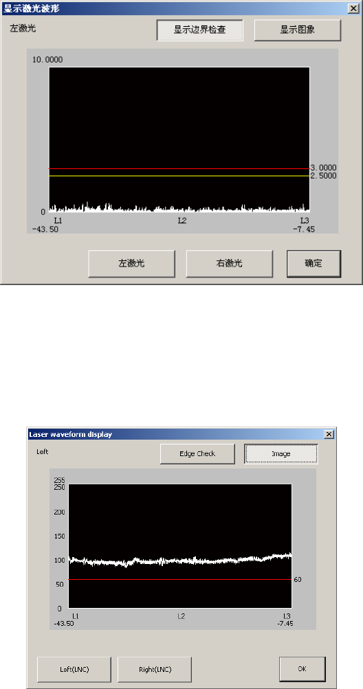 按下“左激光”按钮,可显示左激光的图像波形的结果。
