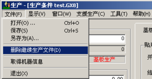 继续生产数据存在时,菜单栏中的“文件”/“删除继续生产文件”与工具栏的按钮显示为有效。